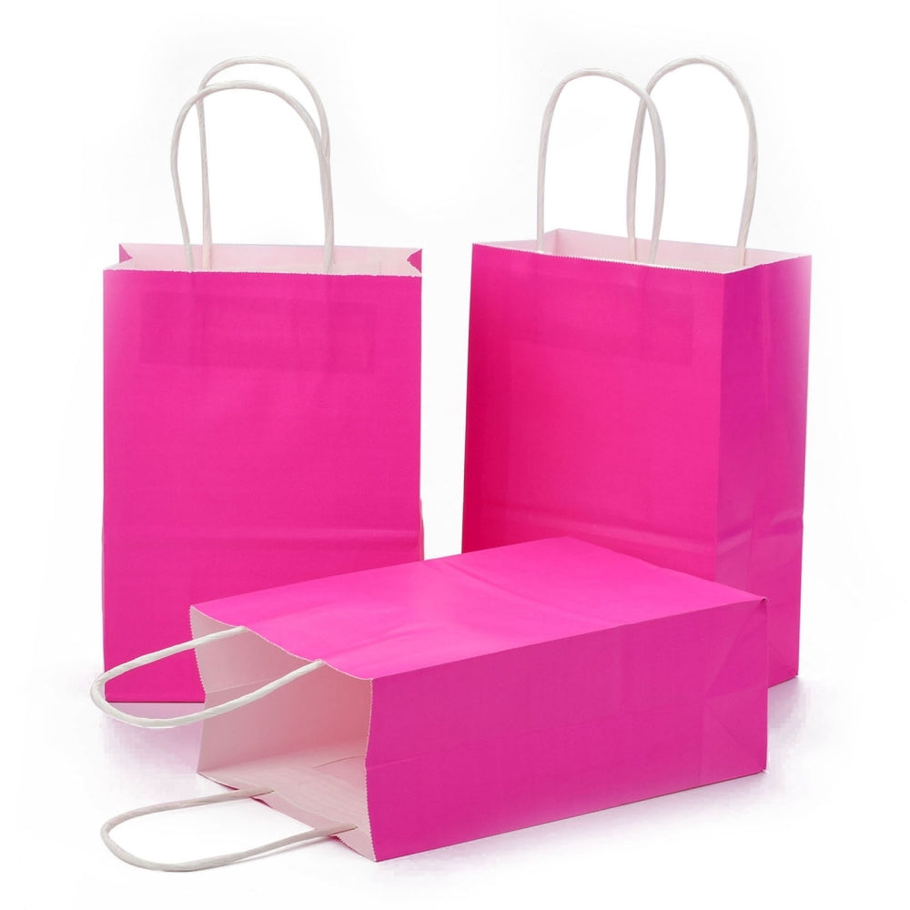 30 pc Kraft Paper Bags, Gift Bags, Shopping Bags, with Handles, Fuchsia, 15x8x21cm
