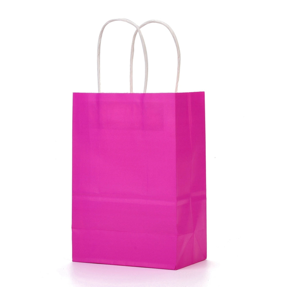 Kraft Paper Bags, Gift Bags, Shopping Bags, with Handles, Fuchsia