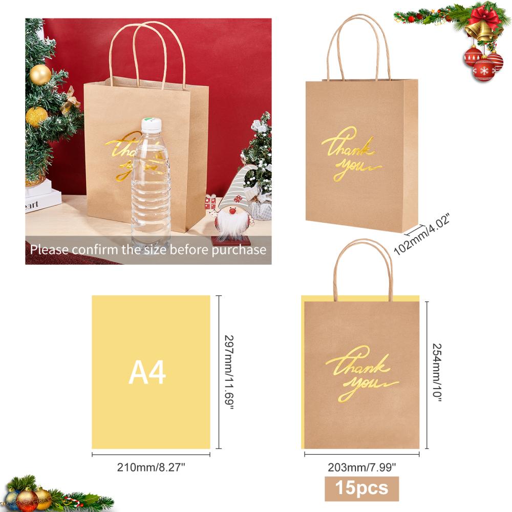 15 pc Rectangle Kraft Paper Bag, with Handle, Word Thank you, for Party Recycled Bag, Peru, 25.4x20.3x10.2cm