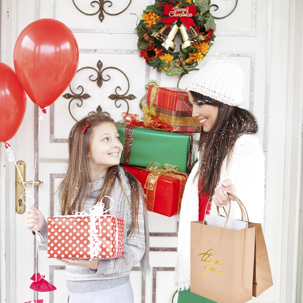 Rectangle Kraft Paper Bag, with Handle, Word Thank you, for Party Recycled Bag, Peru
