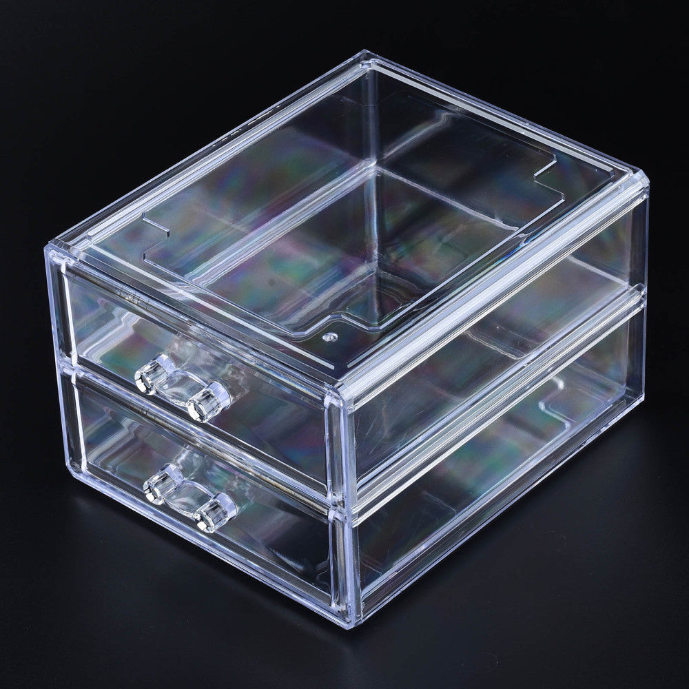 Double Layer Polystyrene Plastic Bead Storage Containers, with 2 Compartments Organizer Boxes, Rectangle Drawer, Clear