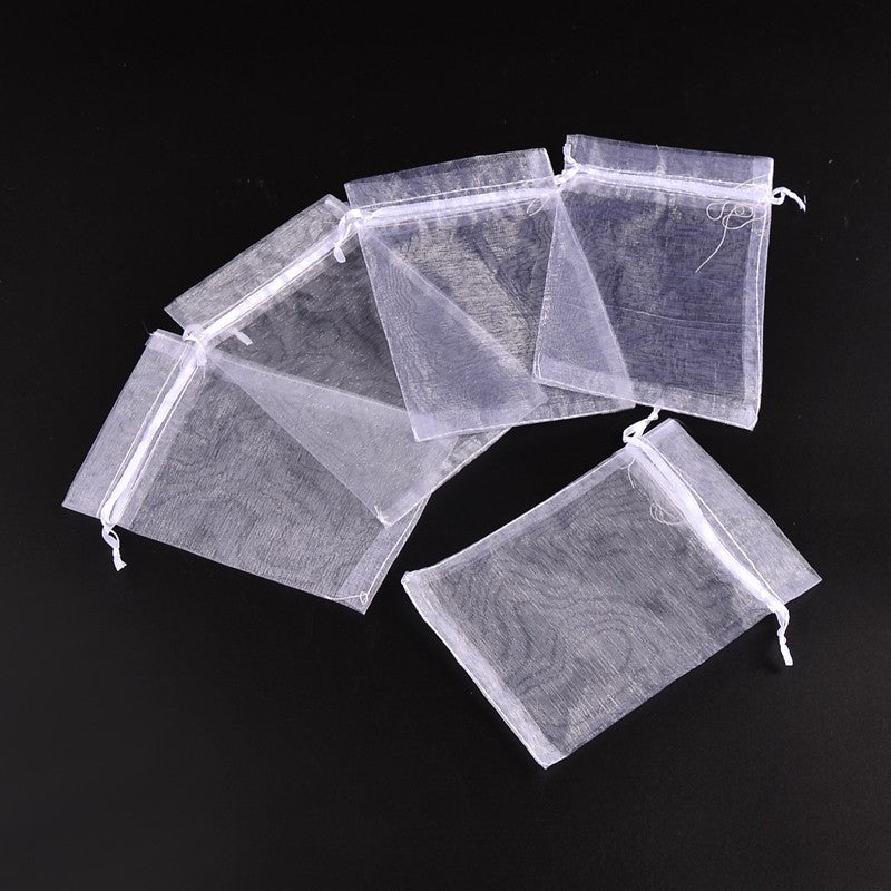 1 Bag Organza Bags, with Ribbons, White, 12x9cm