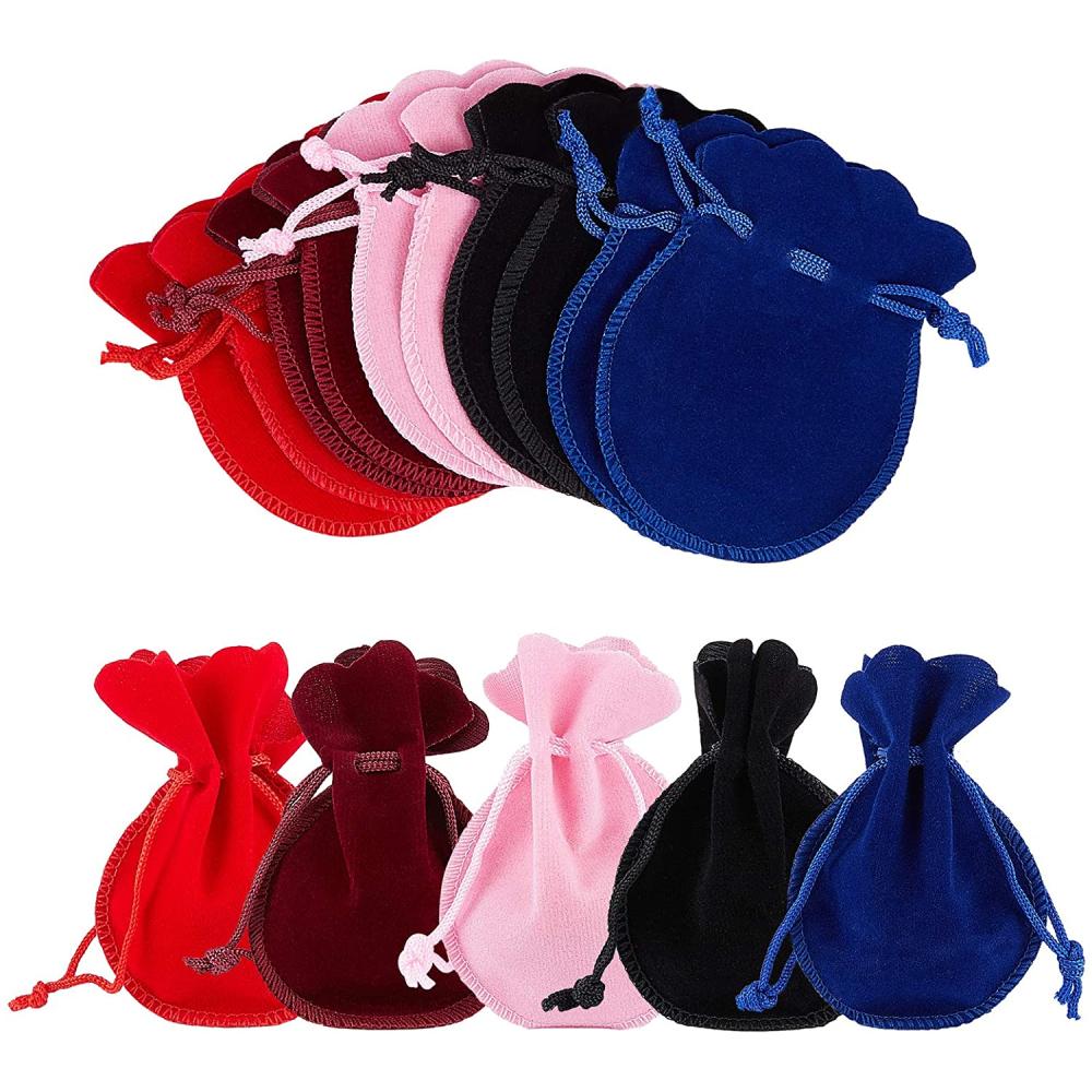 Velvet Gift Bags Drawstring Jewelry Pouches Wedding Favor Bags, Mixed Color