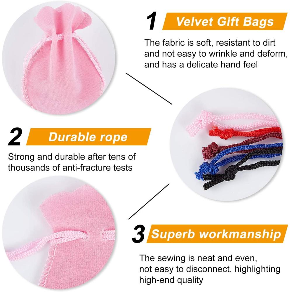 1 Set 50 Pcs Velvet Bags, Velvet Cloth Drawstring Pouches for DIY Candy Gift and Jewelry Necklace Bracelet Packing, 9x7cm, 5 Colors