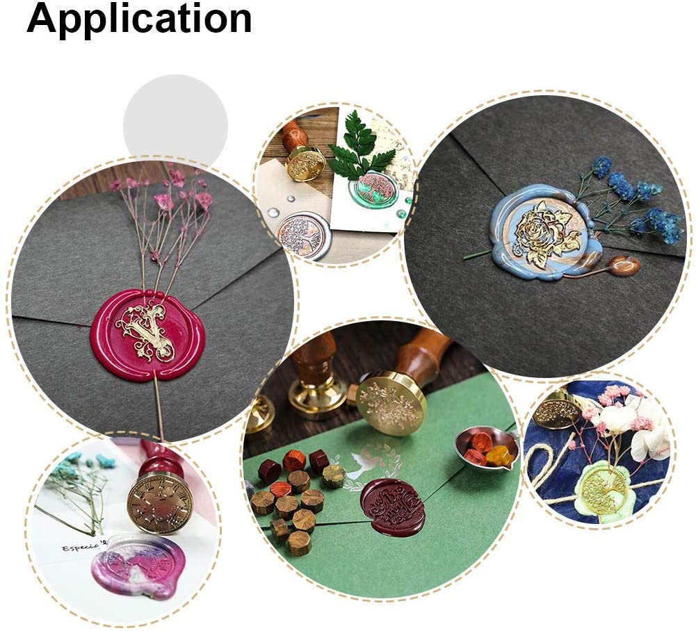 - WAX SEAL STAMP SET MATERIAL: Handle is made of wood, easy to change and install; sealing stamps are made of brass, smooth and shiny, non-stick, easy to clean, in a vintage retro classic style, leaves a clean and beautiful imprint