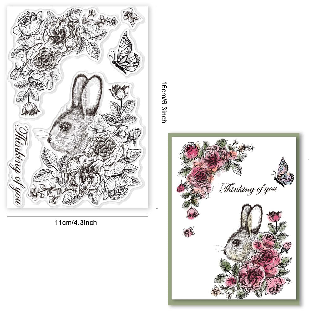 CRASPIRE PVC Plastic Stamps, for DIY Scrapbooking, Photo Album Decorative, Cards Making, Stamp Sheets, Film Frame, Rabbit Pattern, 16x11x0.3cm