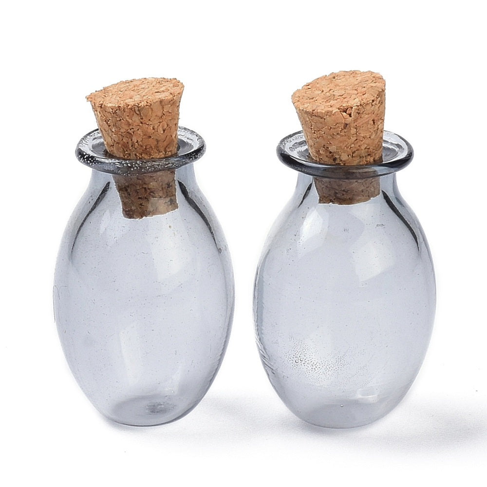 10 pcs Oval Glass Cork Bottles Ornament, Glass Empty Wishing Bottles, DIY Vials for Pendant Decorations, Silver, 15.5x26~30mm
