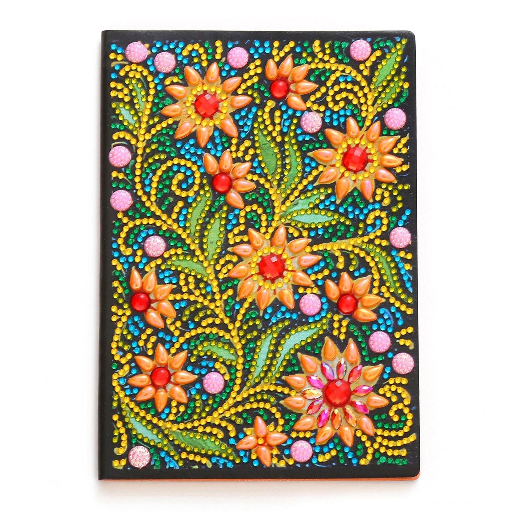 DIY Diamond Painting Notebook Kits, including PU Leather Book, Resin Rhinestones, Diamond Sticky Pen, Tray Plate and Glue Clay, Flower Pattern