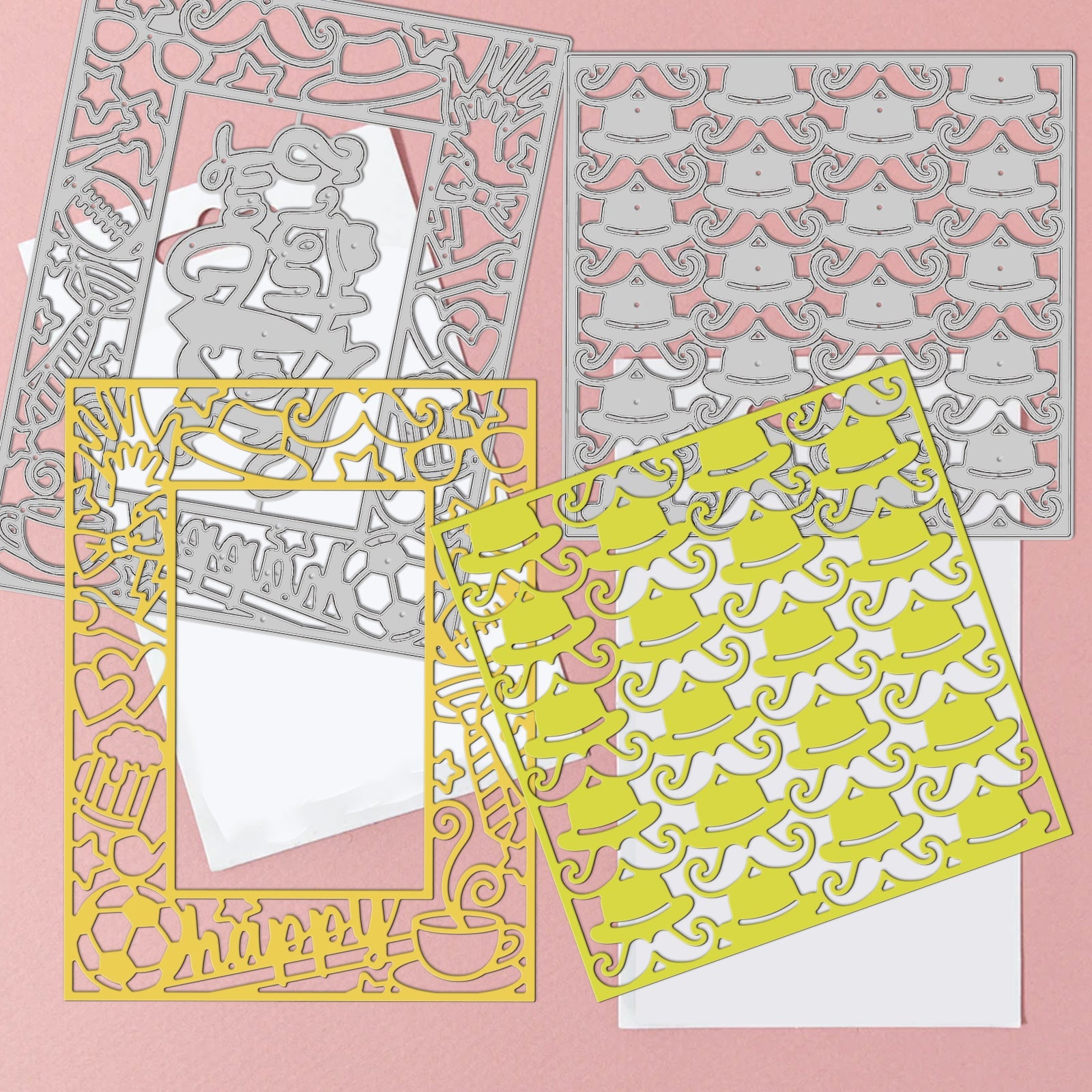 CRASPIRE Father's Day Border, Background Carbon Steel Cutting Dies Stencils, for DIY Scrapbooking/Photo Album, Decorative Embossing DIY Paper Card
