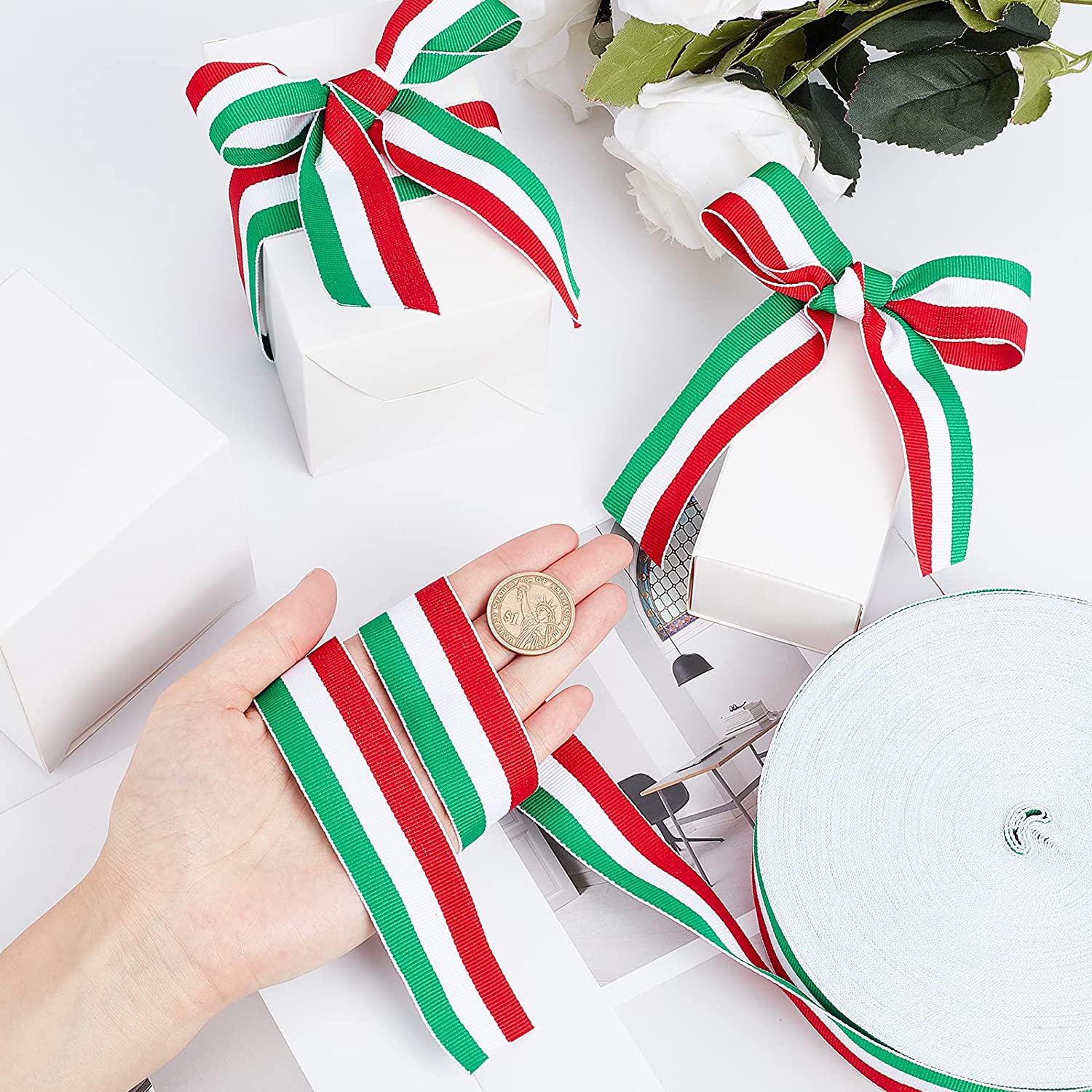 - Stripes Ribbon: Red, white,and green is perfect for projects utilizing the Italian theme; perfect for patriotic lover, gift wrapping, patriotic parties, party favors, Christmas holiday party decoration and Family medals.