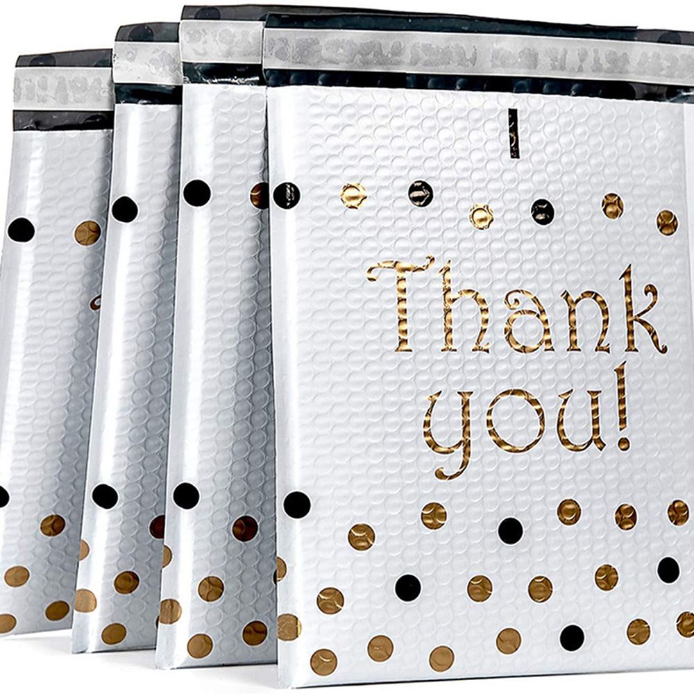 Thank you Rectangle Kraft Paper Bubble Mailers, Self-Seal Bubble Padded Envelopes, Mailing Envelopes for Packaging, White