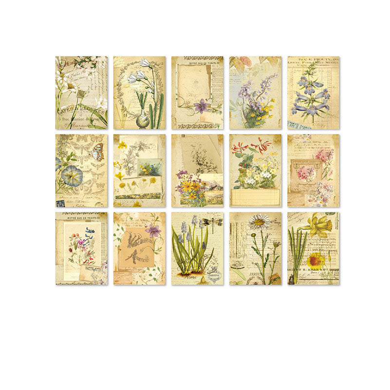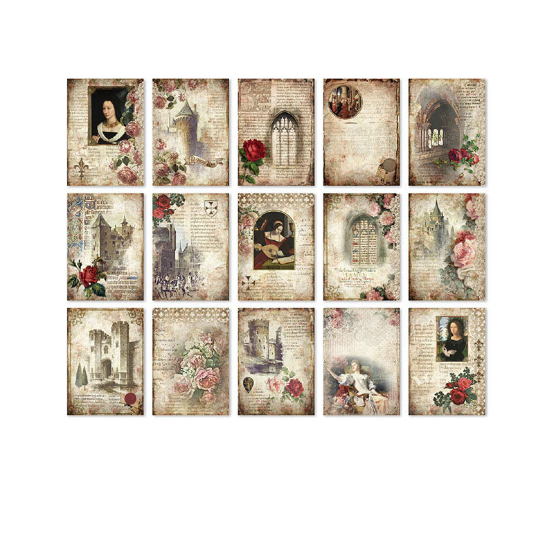 - 30Pcs 15 Styles Retro Scrapbook Paper Pads, for DIY Album Scrapbook, Background Paper, Diary Decoration, Sienna. Size: about 100mm wide, 140mm long, 15 styles, 2pcs/style, 30pcs/set.