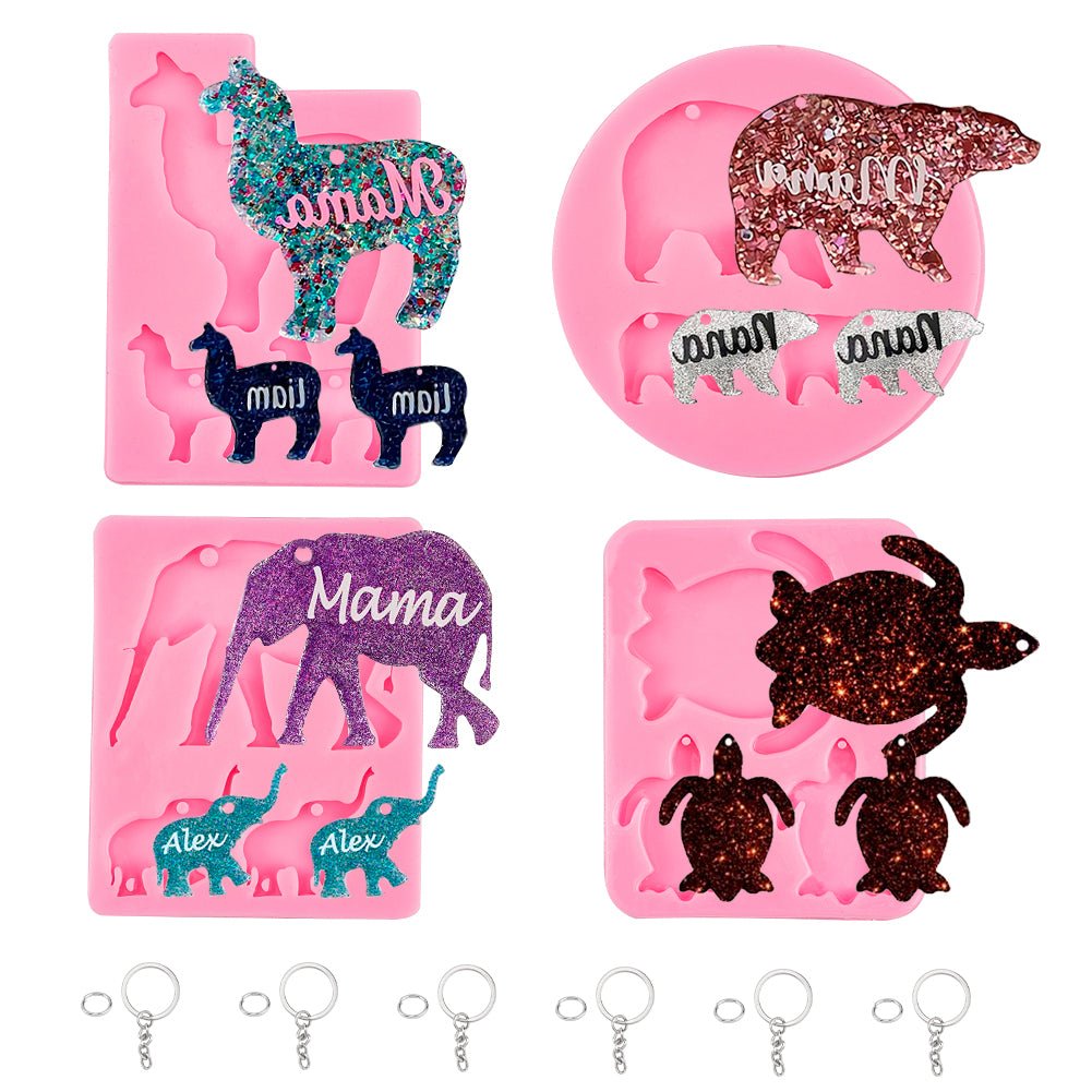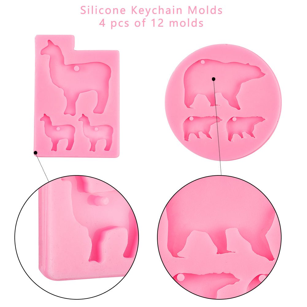 - DIY Animal Theme Keychain Making Kits, with Pendant Silicone Molds, Resin Casting Molds, Iron Keychain Ring and Iron Jump Rings, Pink.