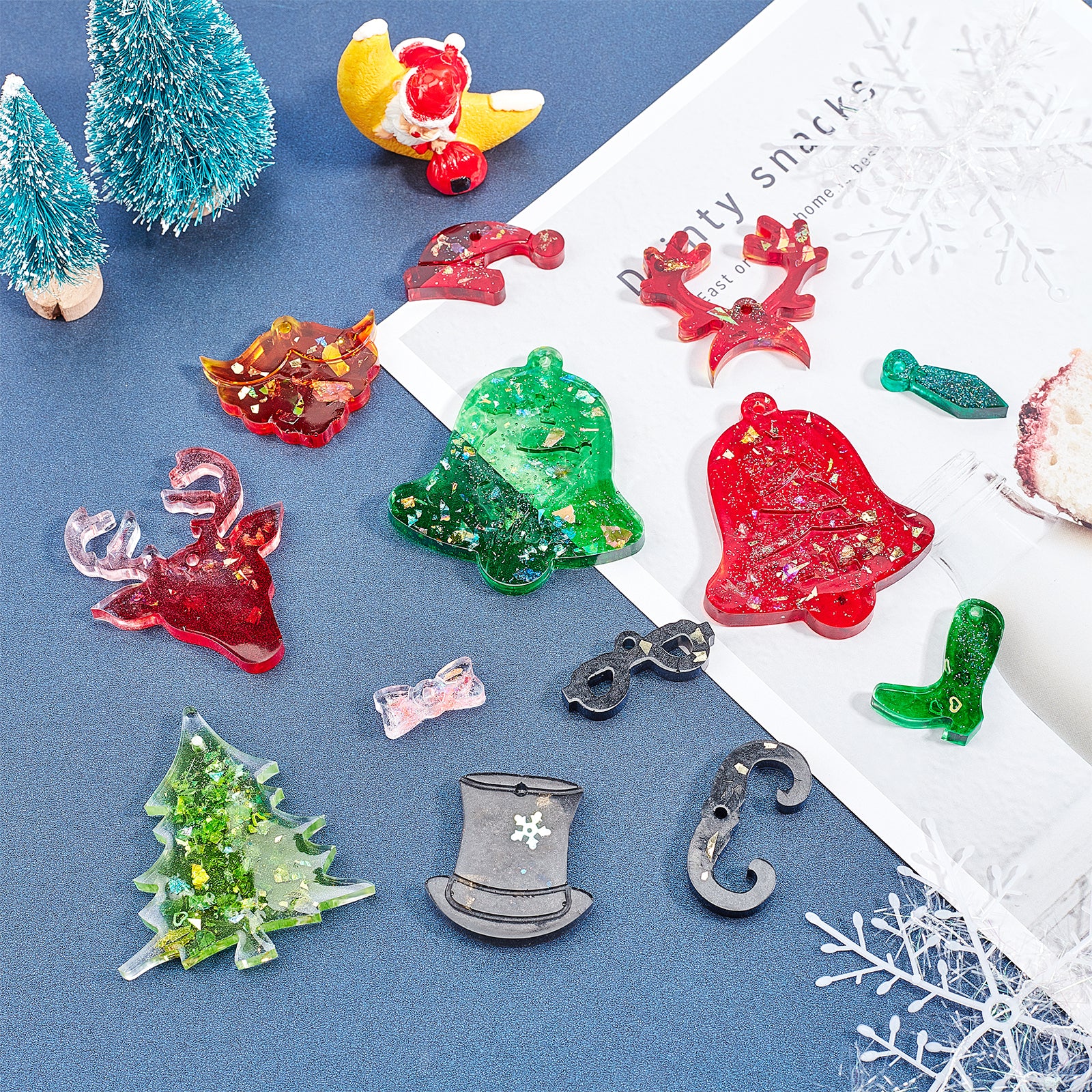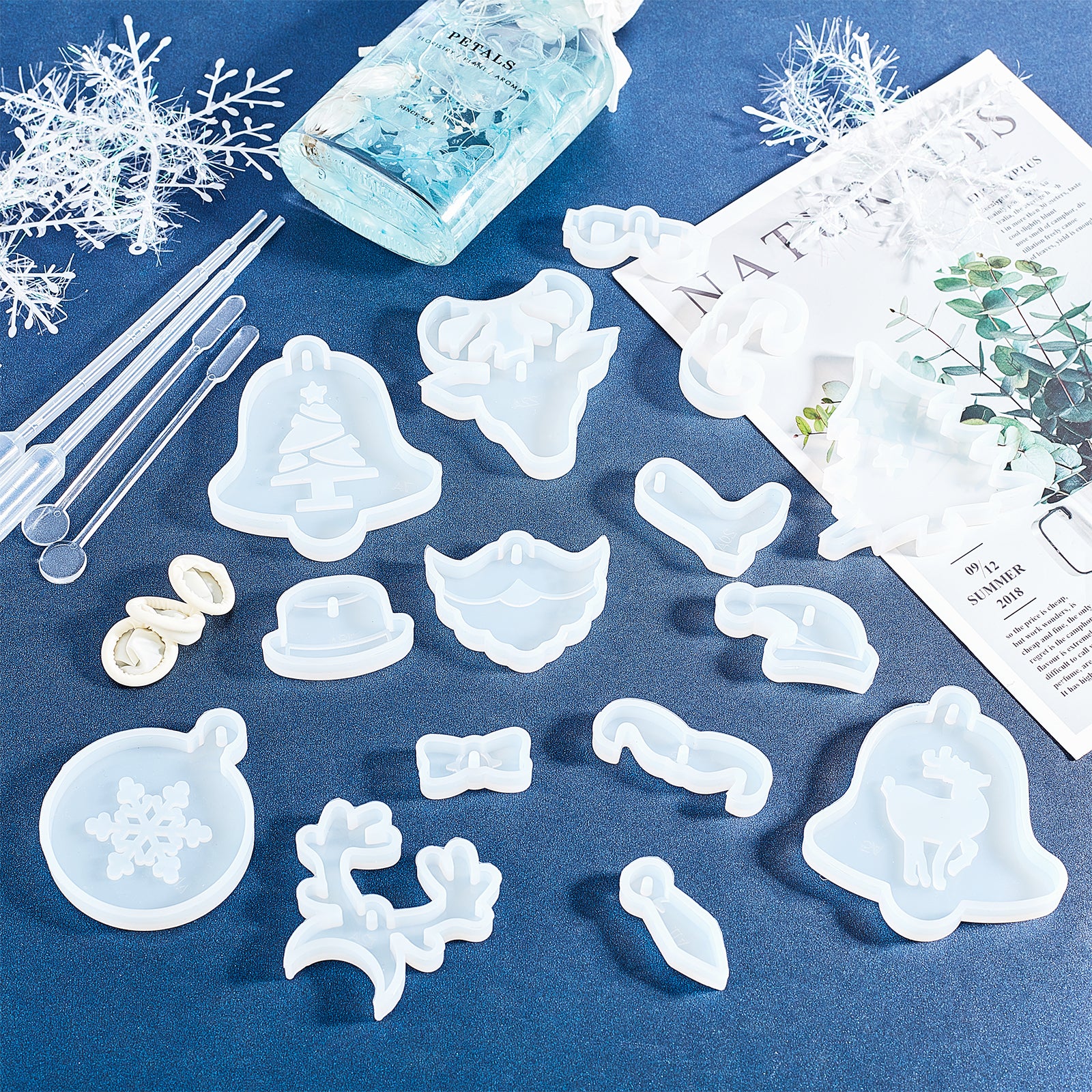 • Christmas's Day Pendant Silicone Molds, with 60ml Measuring Cup, Round Stirring Rod, Essential Oils Pipettes Dropper, Transfer Pipettes, Latex Finger Cots and Nail Art Sequins/Paillette, Mixed Color.