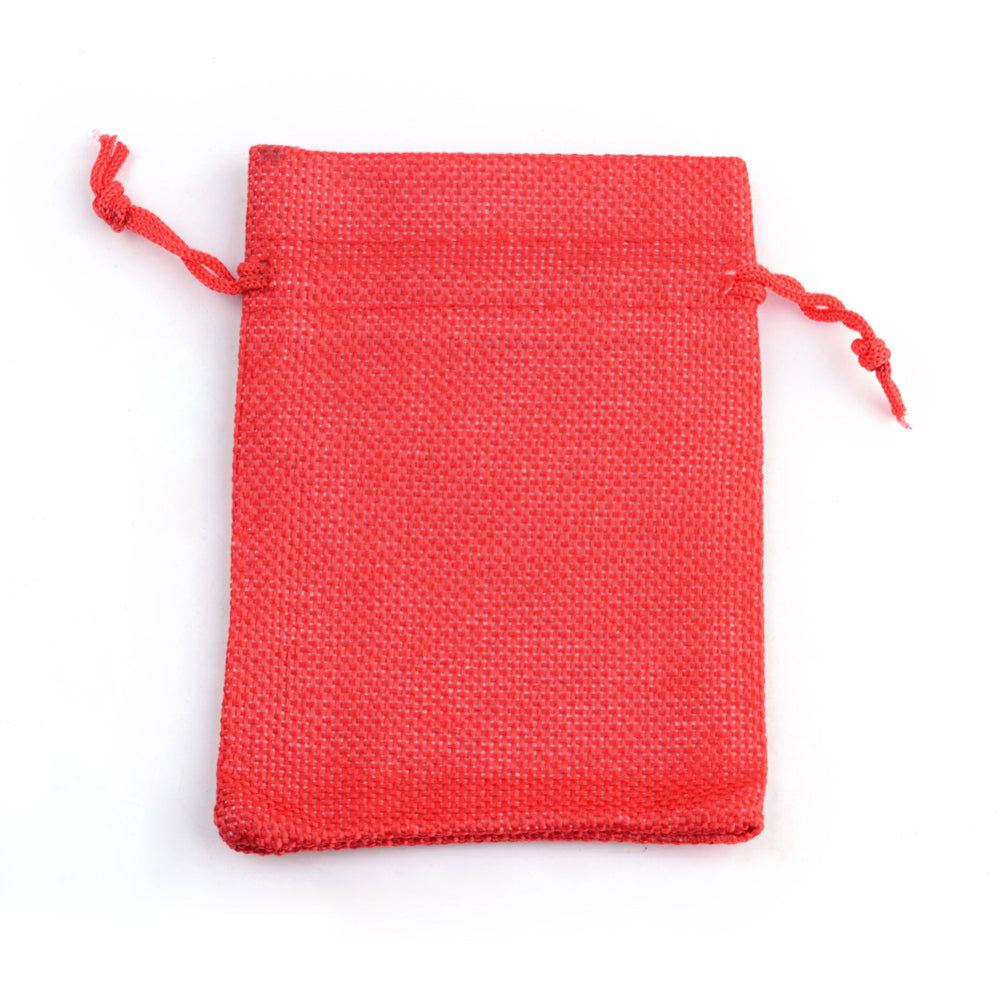 Polyester Imitation Burlap Packing Pouches Drawstring Bags, for Christmas, Wedding Party and DIY Craft Packing, Red