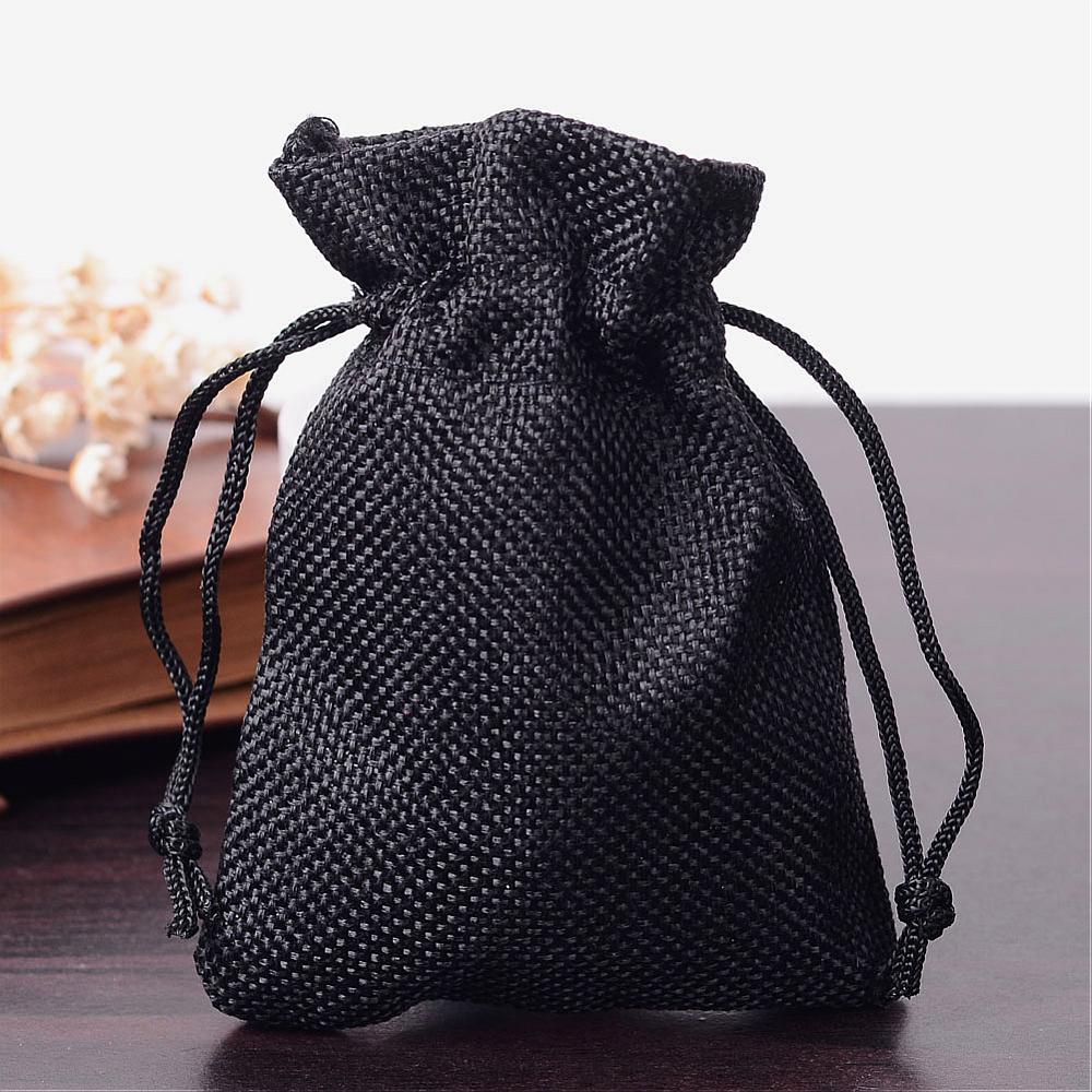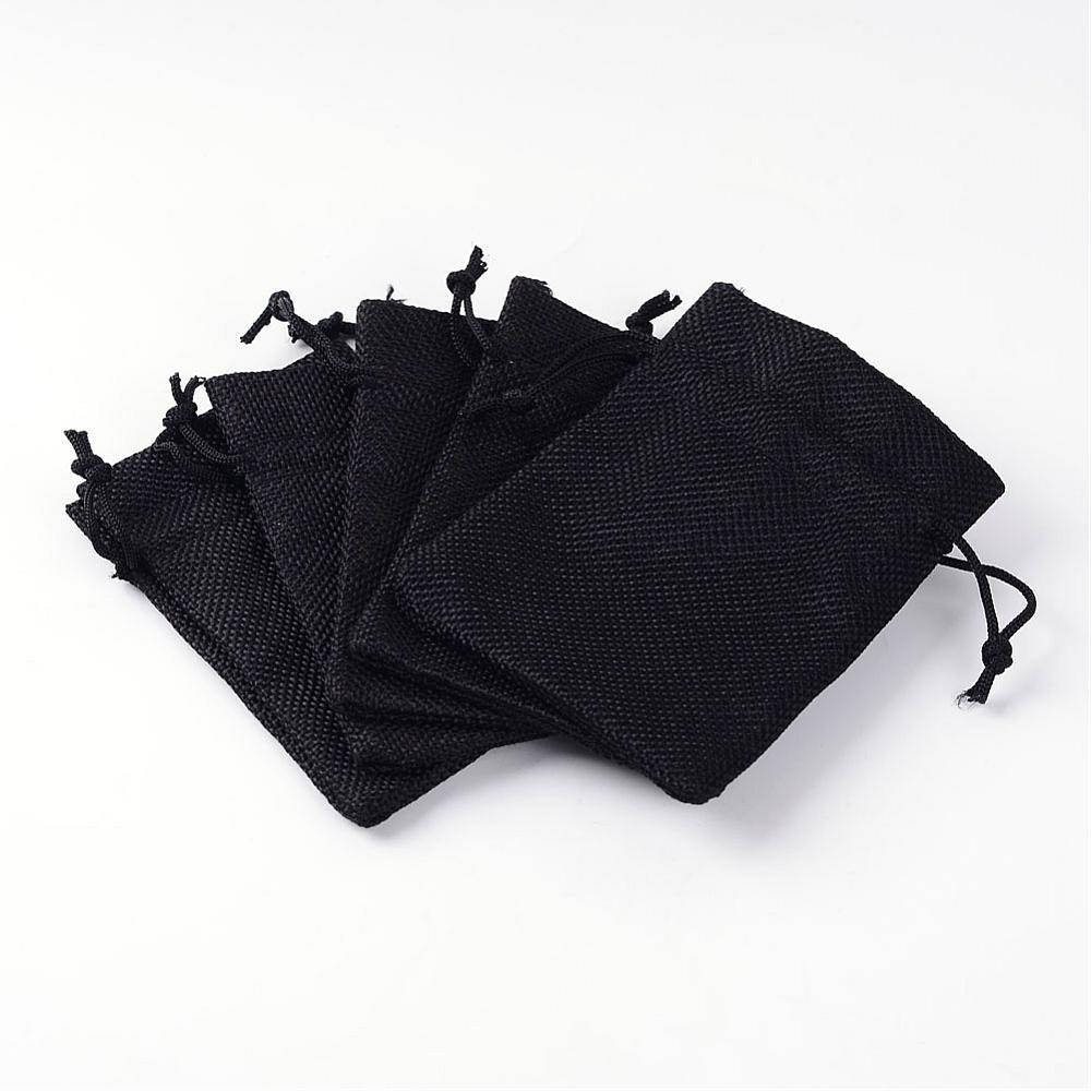 Polyester Imitation Burlap Packing Pouches Drawstring Bags, for Christmas, Wedding Party and DIY Craft Packing, Black