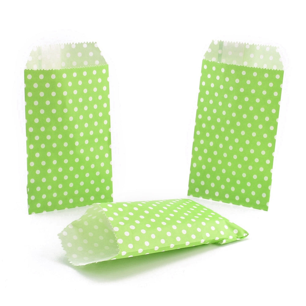 100 pc Kraft Paper Bags, No Handles, Storage Bags, White Polka Dot Pattern, Wedding Party Birthday Gift Bag, Pale Green, 15x8.3x0.02cm