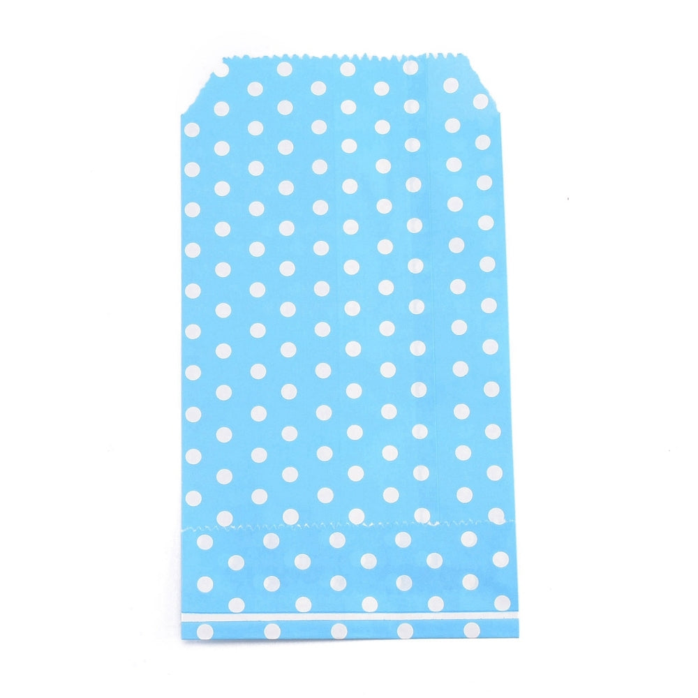 100 pc Kraft Paper Bags, No Handles, Storage Bags, White Polka Dot Pattern, Wedding Party Birthday Gift Bag, Light Sky Blue, 15x8.3x0.02cm