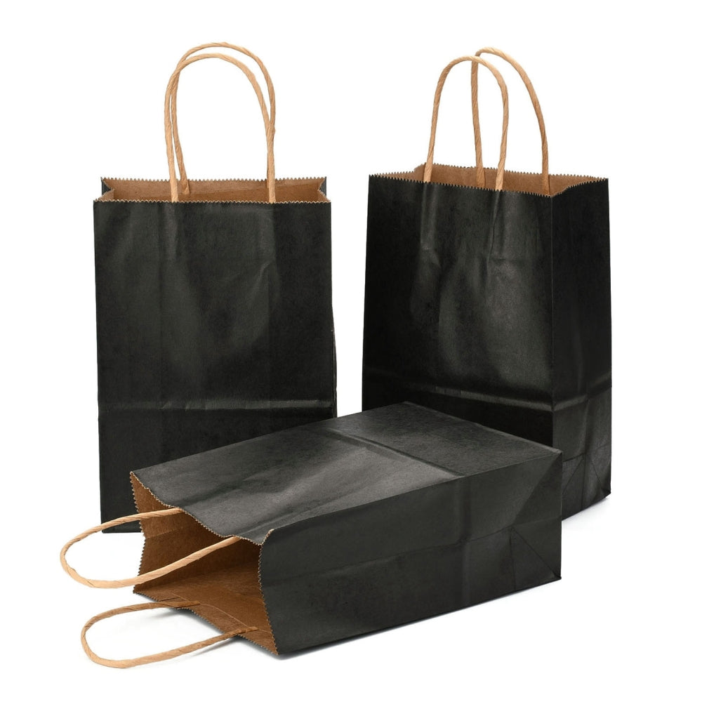 30 pc Kraft Paper Bags, Gift Bags, Shopping Bags, with Handles, Black, 15x8x21cm