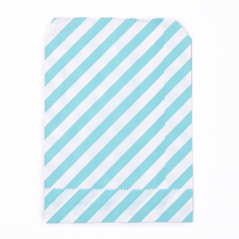 100 pc Kraft Paper Bags, No Handles, Food Storage Bags, Stripe Pattern, Sky Blue, 18x13cm
