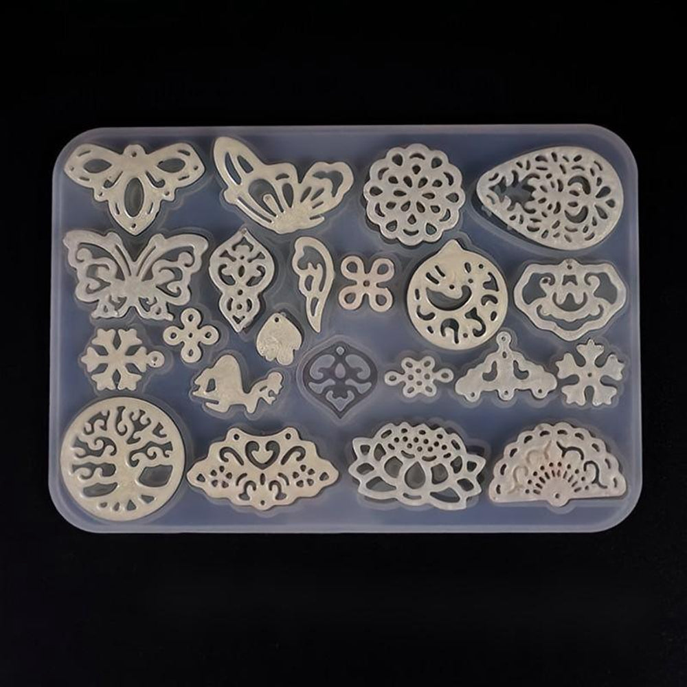 Pendant Silicone Molds, Resin Casting Molds, For UV Resin, Epoxy Resin Jewelry Making, Butterfly & Tree & Flower, White, 10x14.4cm