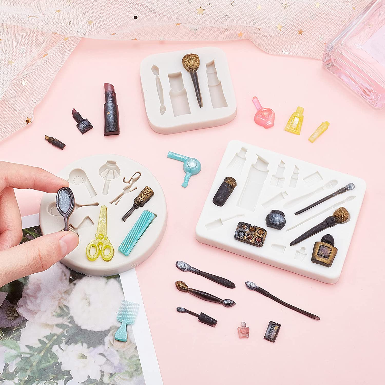 - Size: Cosmetics Makeup Tools Silicone Molds: 55.5x59.5x9.5mm, inner size: 33.5~40.5x4.5~11.5mm, 1pc; Lipstick & Perfume Epoxy Resin Silicone Molds: 96x73x9.5mm, inner Size: 9.5~51.5x2~14.5mm, 1pc.