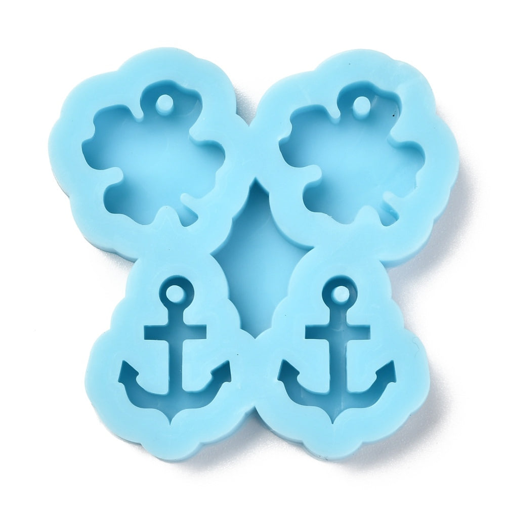 Pendant Silicone Molds, Resin Casting Molds, For UV Resin, Epoxy Resin Jewelry Making, Clover & Anchor, Dark Cyan