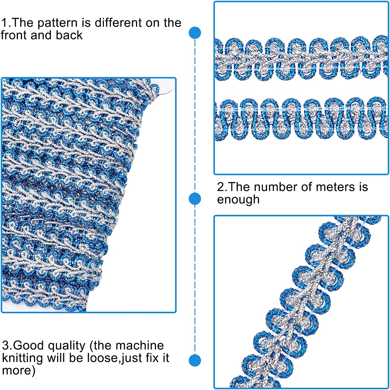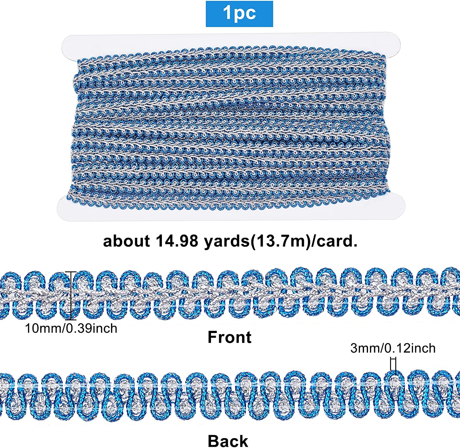 • Package & SizeYou will receive 15 yards/13.7m dark blue and silver metal trim, the width is about 3/8 inch / 10mm, enough for you and your family.