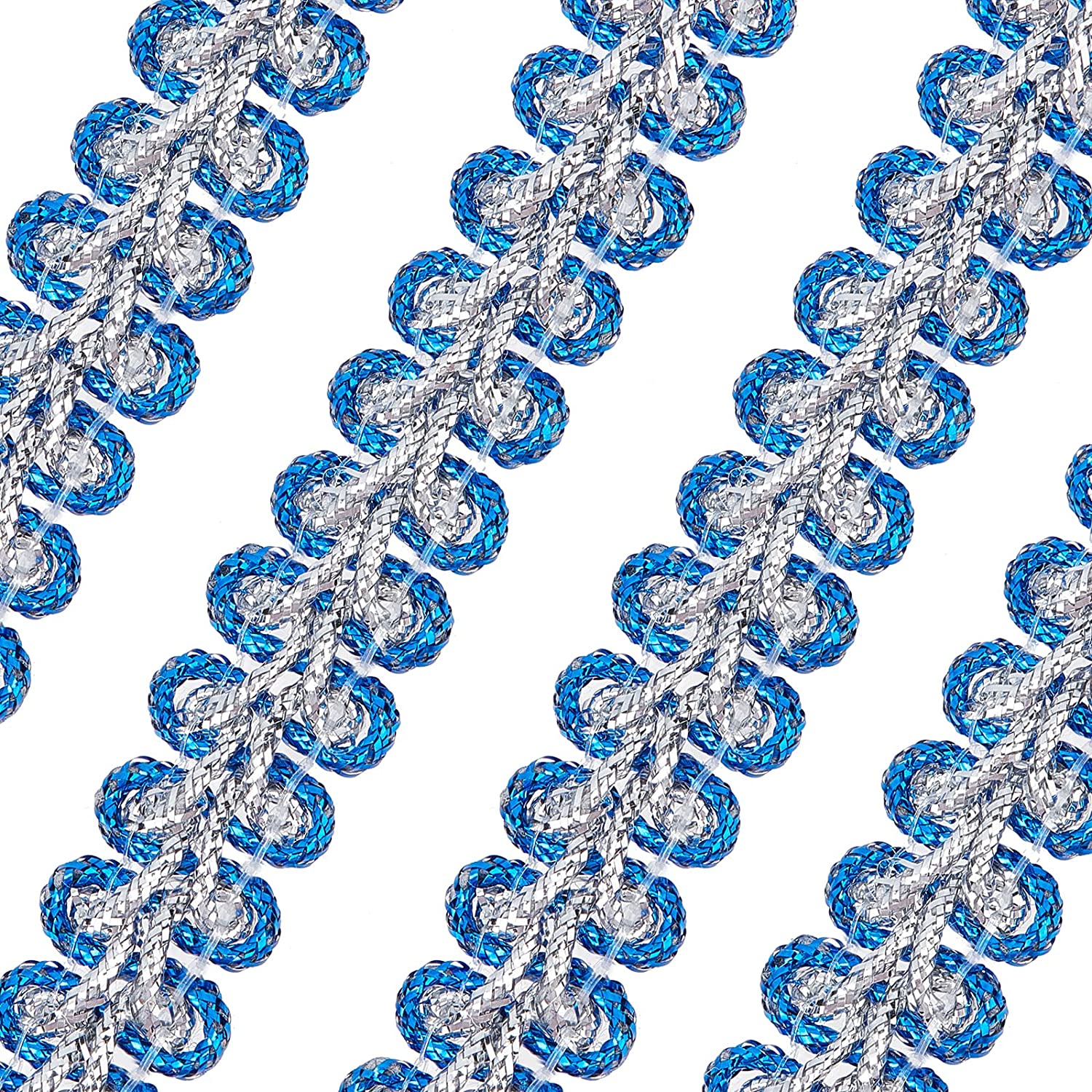 15 Yards Metallic Braid Lace Trim Blue & Silver Sewing Centipede Braided Lace 3/8 Wide Decorated Gimp Trim for Wedding Bridal DIY Clothes Jewelry Crafts Sewing Home Decor
