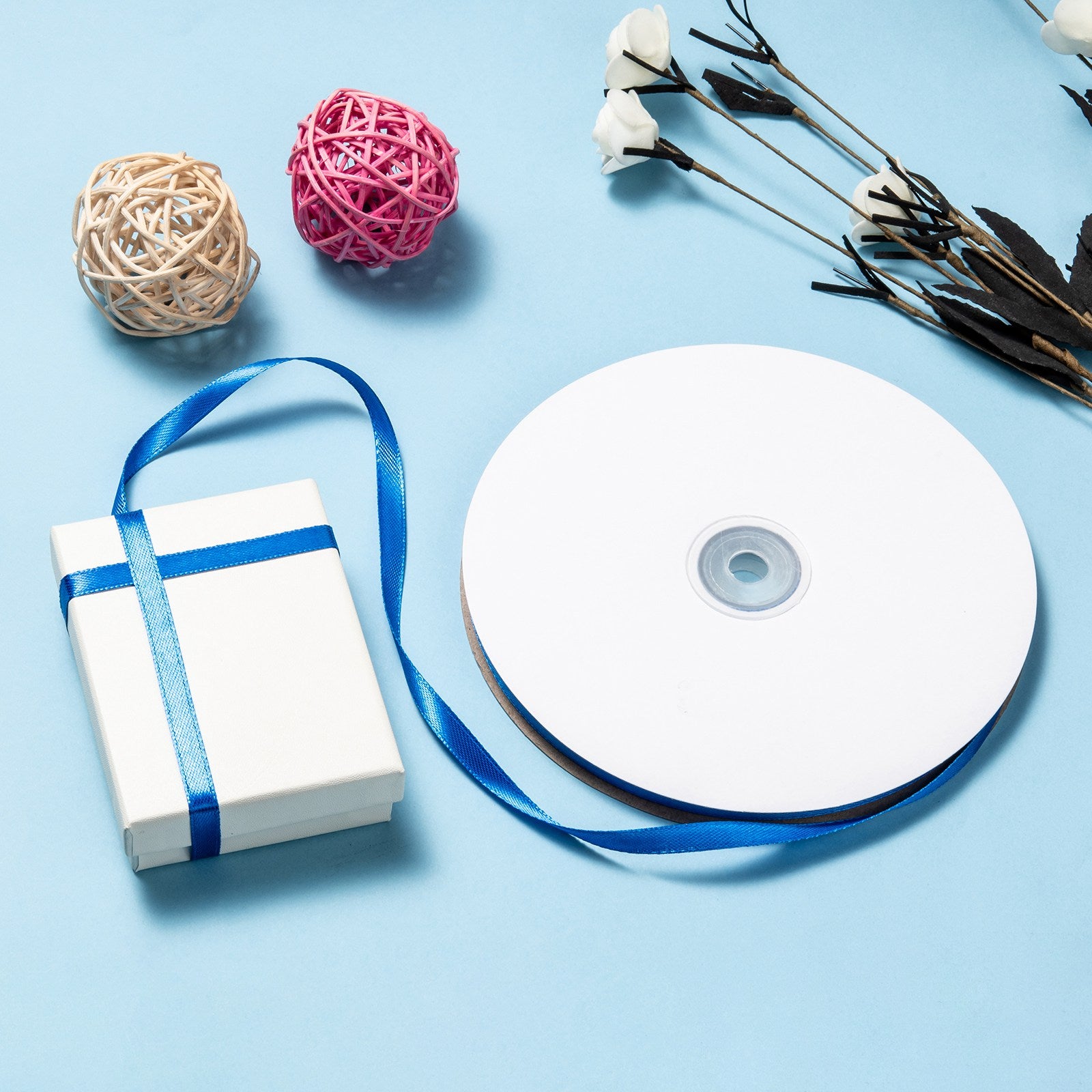 • Single Face Solid Color Satin Ribbon, for Wedding, Gift Wrapping, Bow Making, Blue
