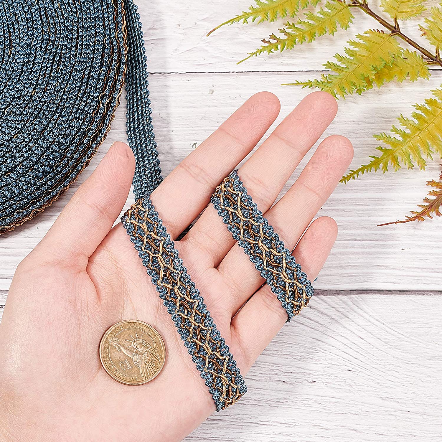 15M(16 Yards) 1/2(14mm) Polyester Rhombus Pattern Gimp Braid Trim for Costume DIY Crafts Sewing Jewelry Making Home Decoration, Steel Blue