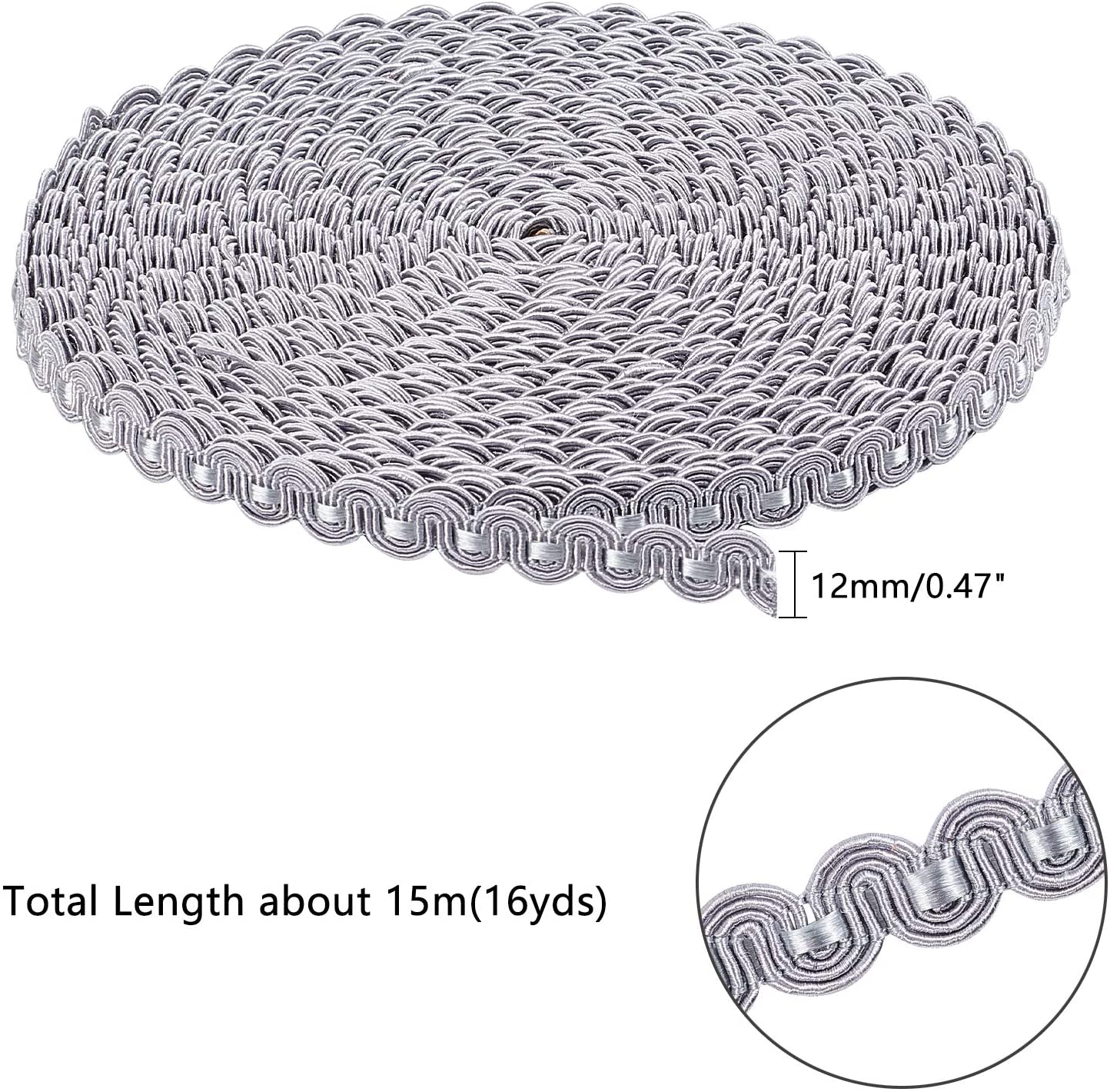 15M(16 Yards) 1/2(14mm) Nylon Curve Pattern Gimp Braid Trim for Costume DIY Crafts Sewing Jewelry Making Home Decoration, Gray