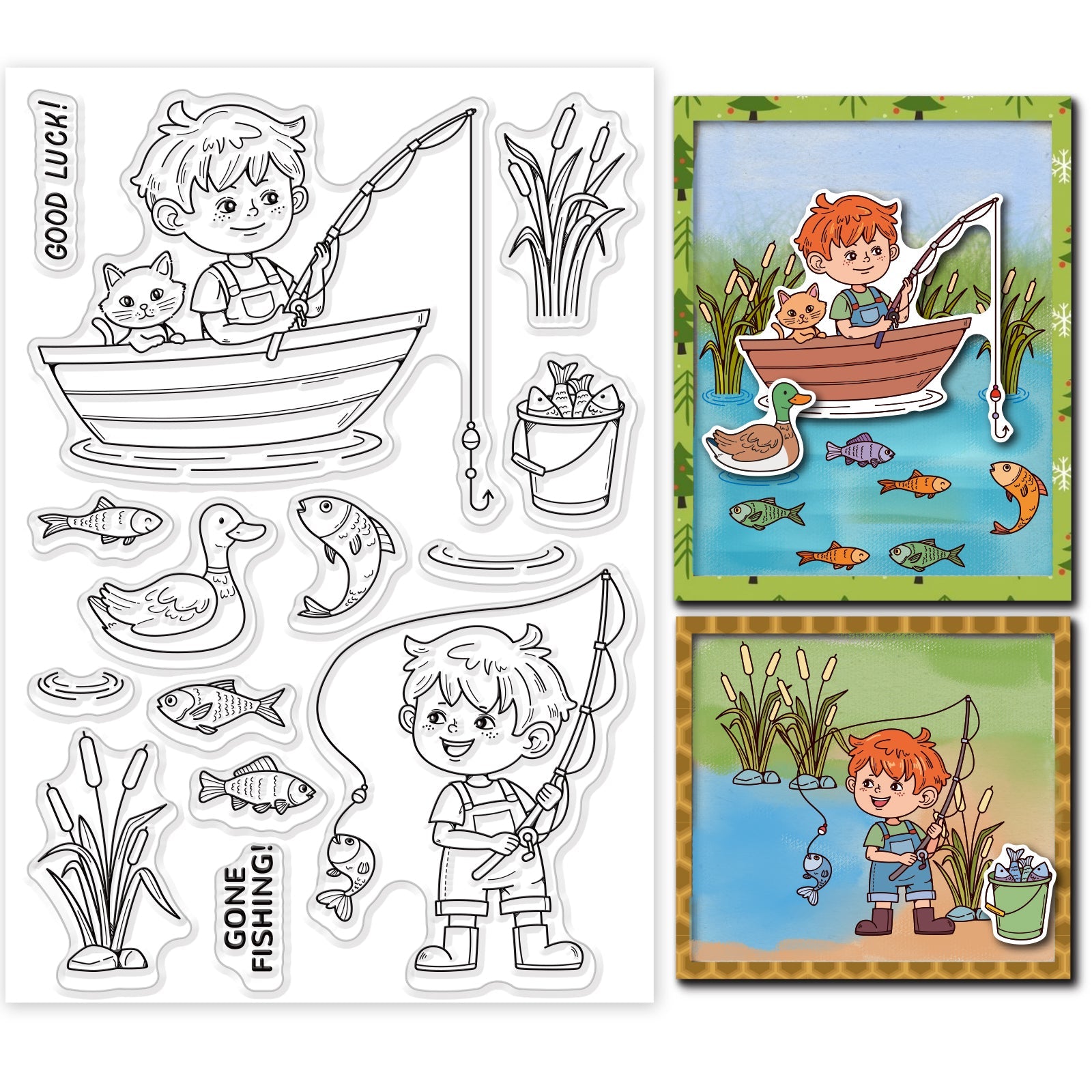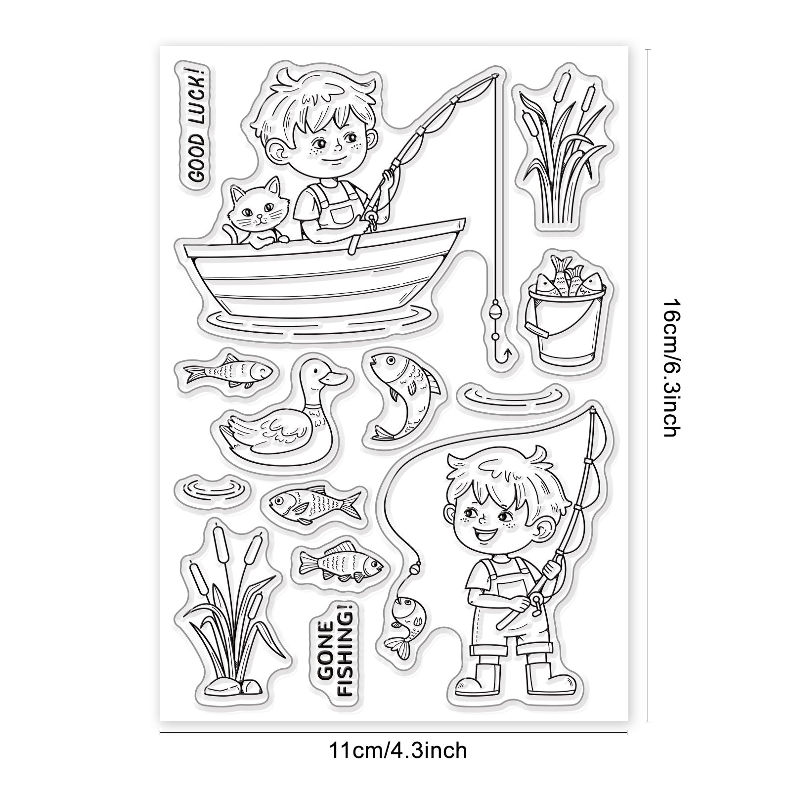 Craspire Fishing Boy Clear Silicone Stamp Seal for Card Making Decoration and DIY Scrapbooking
