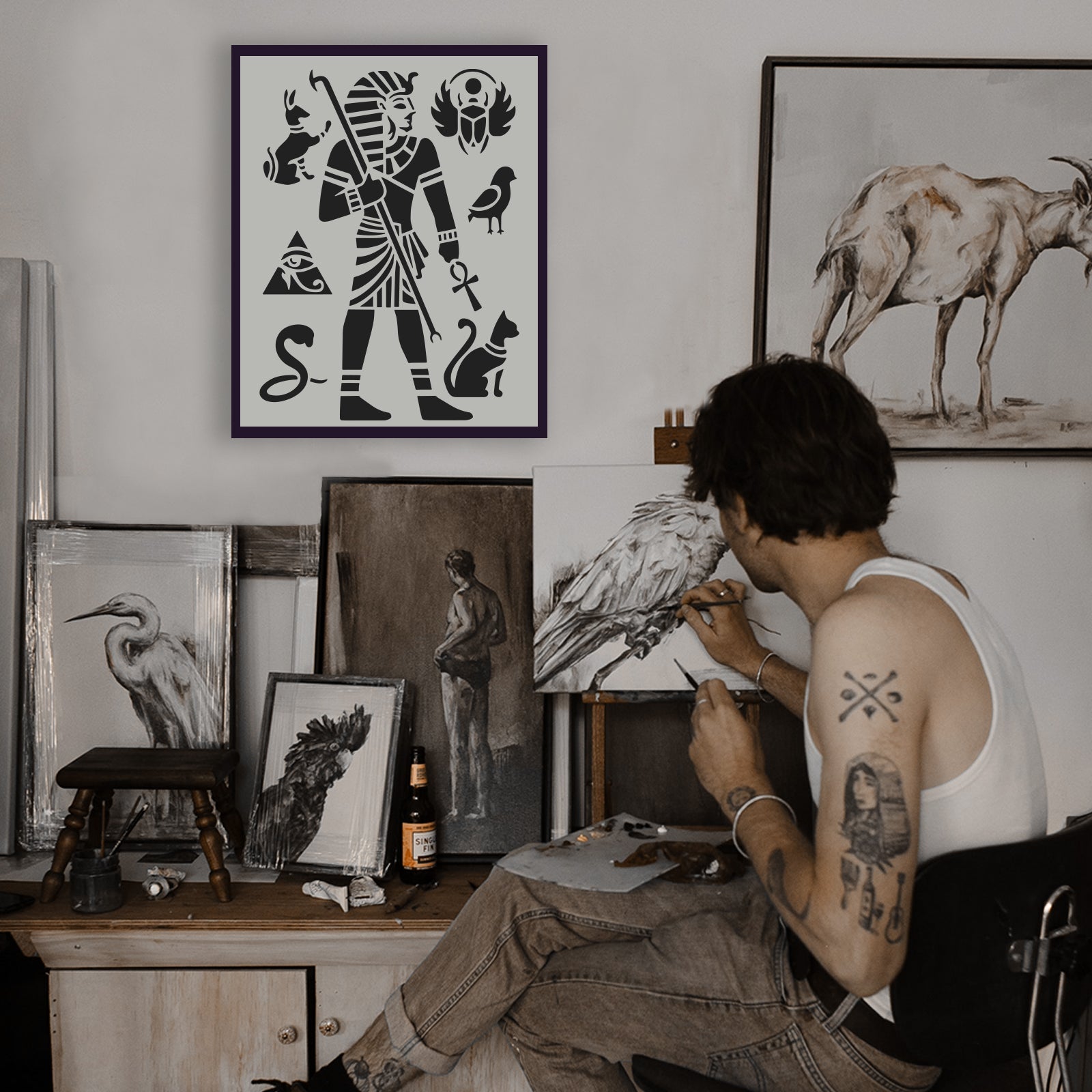 Plastic Drawing Painting Stencils Templates, Rectangle, Egypt Theme Pattern