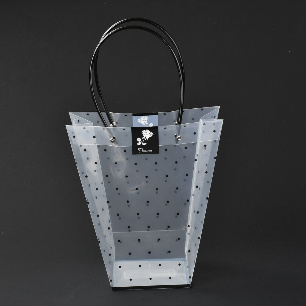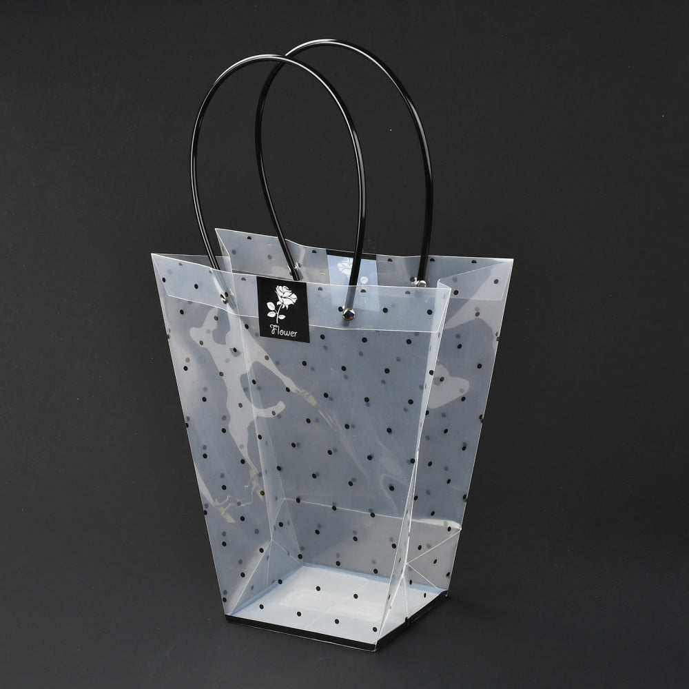 10 pc Transparent PVC Gift Bag with Handle, Flower Packing Bags, Recycled Bags, for Wedding, Birthday, Baby Shower, Polka Dot Pattern, 41x23.5cm