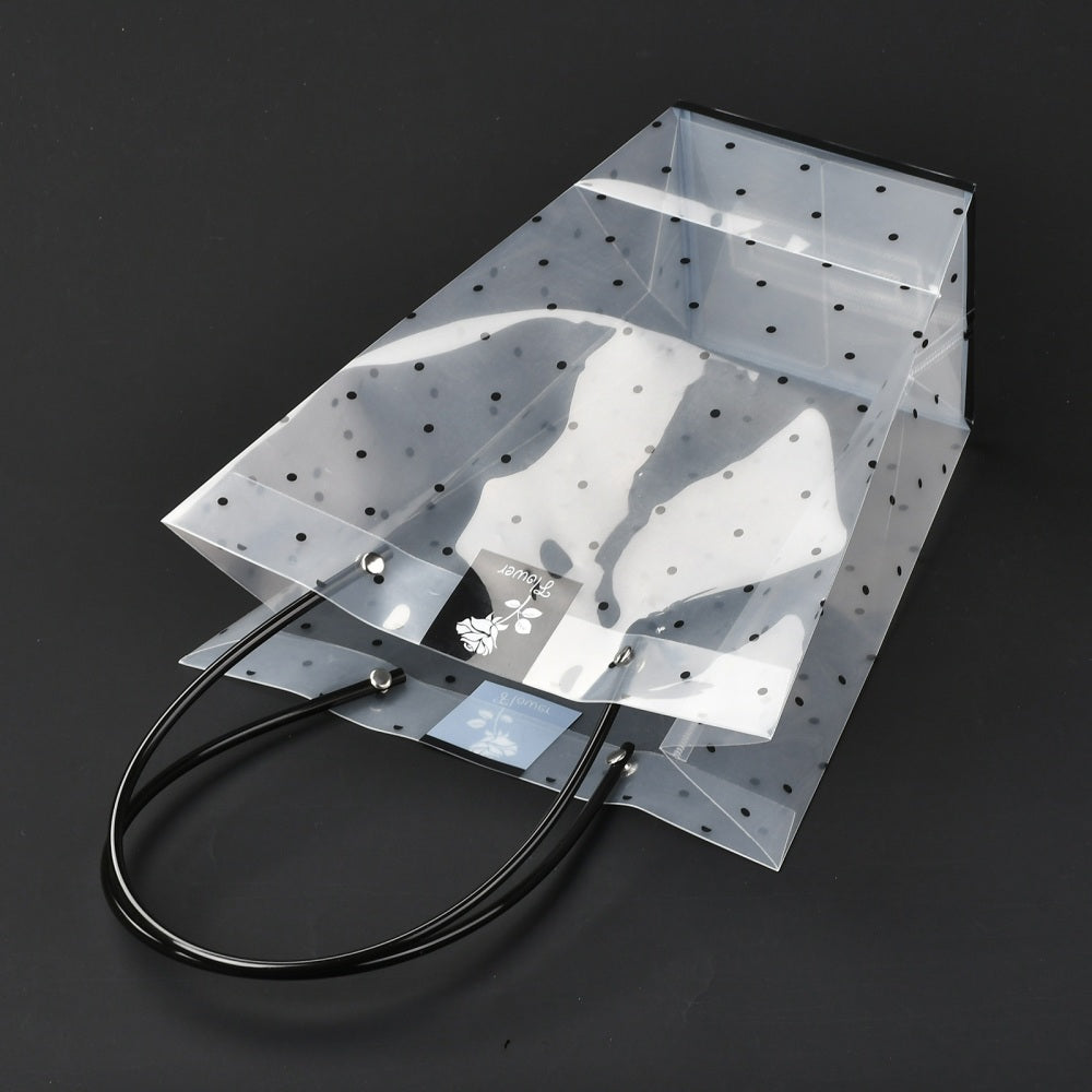 Transparent PVC Gift Bag with Handle, Flower Packing Bags, Recycled Bags, for Wedding, Birthday, Baby Shower, Polka Dot Pattern