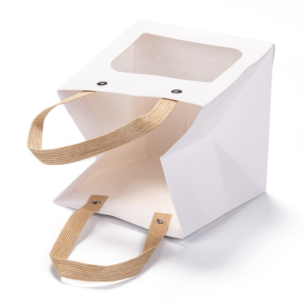 210g Rectangle Kraft Paper Bags, with Nylon Handles and Transparent Windows, for Gift Bags and Shopping Bags, White