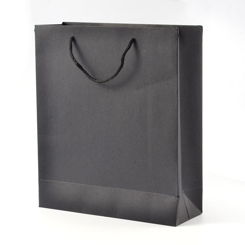 10 pc Rectangle Kraft Paper Bags, Gift Bags, Shopping Bags, with Nylon Cord Handles, Black, 28x20x10cm