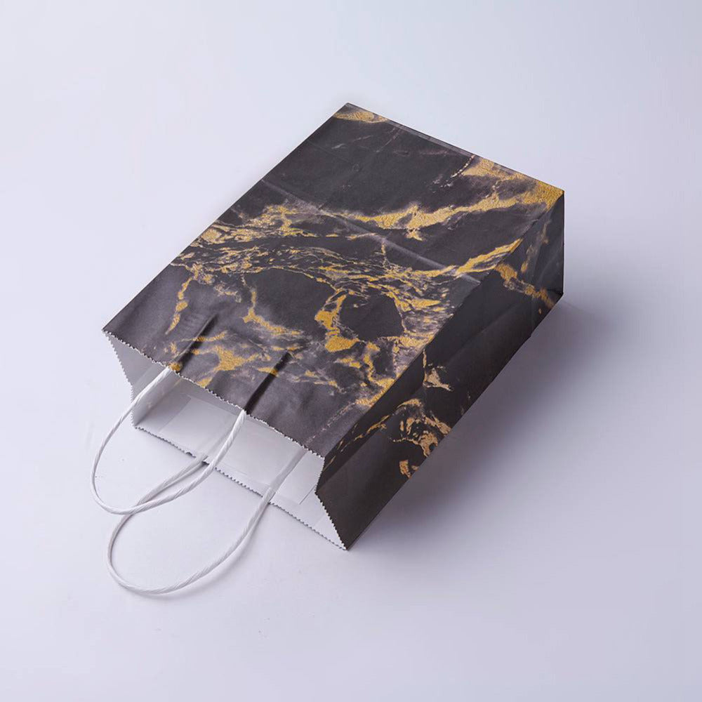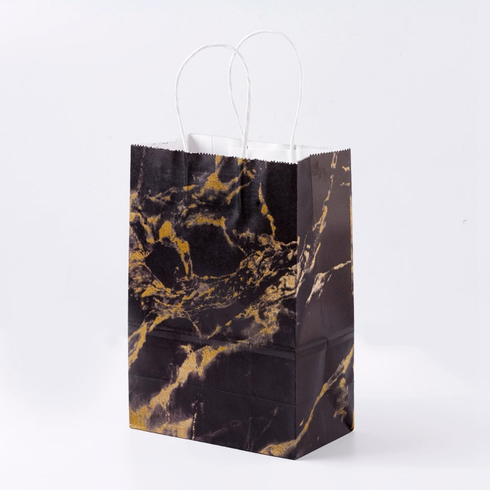 12 pc kraft Paper Bags, with Handles, Gift Bags, Shopping Bags, Rectangle, Marble Texture Pattern, Goldenrod, 21x15x8cm