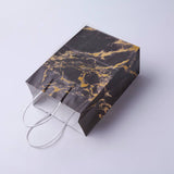 kraft Paper Bags, with Handles, Gift Bags, Shopping Bags, Rectangle, Marble Texture Pattern, Goldenrod