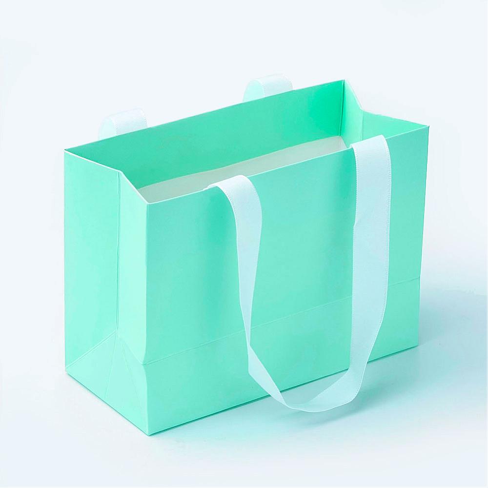 Paper Bags, Gift Bags, Shopping Bags, with Ribbon Handles, Rectangle, Turquoise