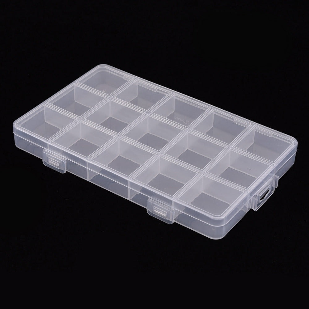 Polypropylene(PP) Bead Storage Containers, 15 Compartments Organizer Boxes, Rectangle with Cover, Clear