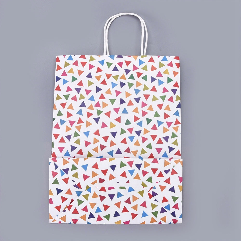 Triangle Pattern Party Present Gift Paper Bags, with Handle, for Birthday Wedding Christmas Party, Rectangle, Colorful