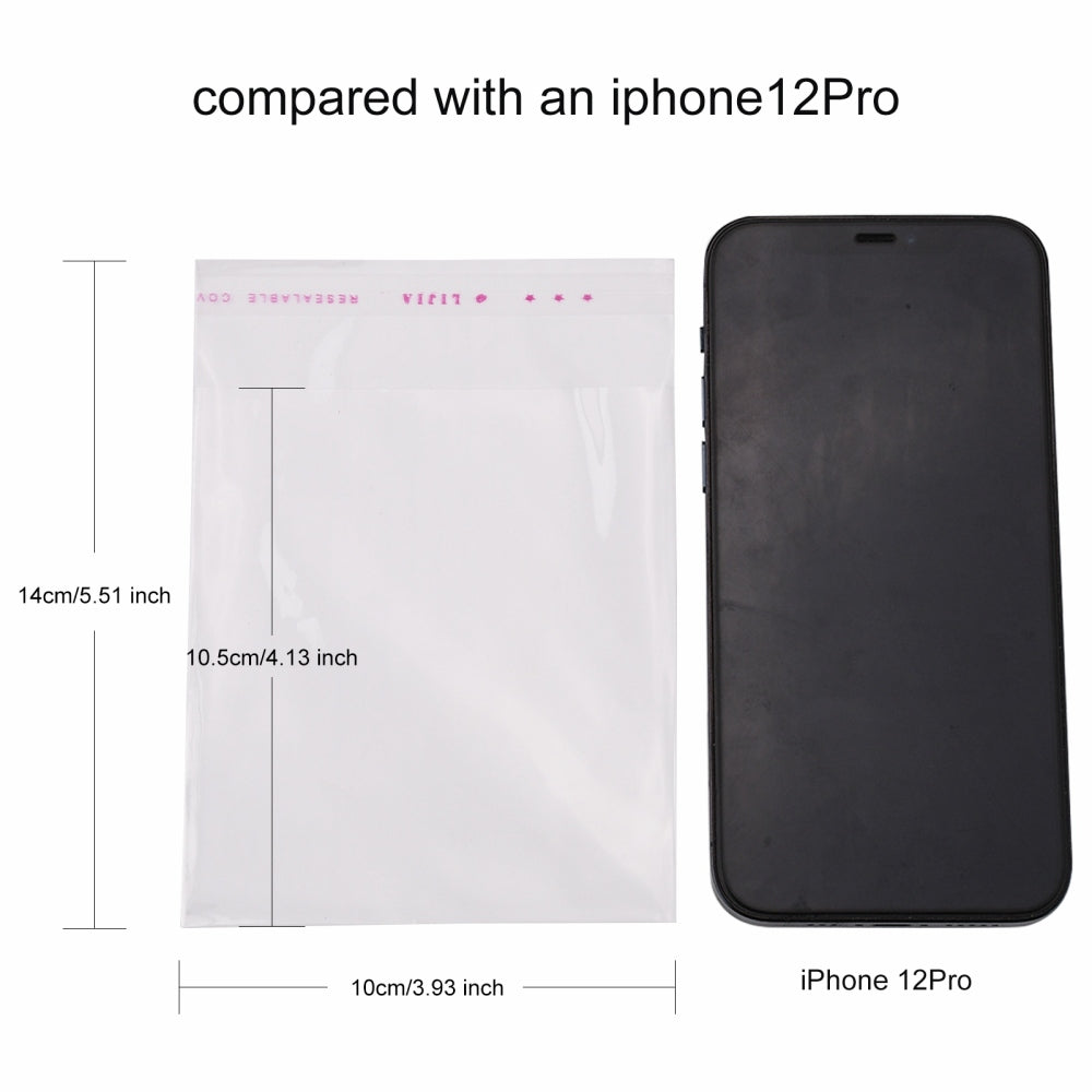 1000 pc OPP Cellophane Bags, Small Jewelry Storage Bags, Self-Adhesive Sealing Bags, Rectangle, Clear, 14x10cm, Unilateral Thickness: 0.035mm, Inner Measure: 10.5x10cm