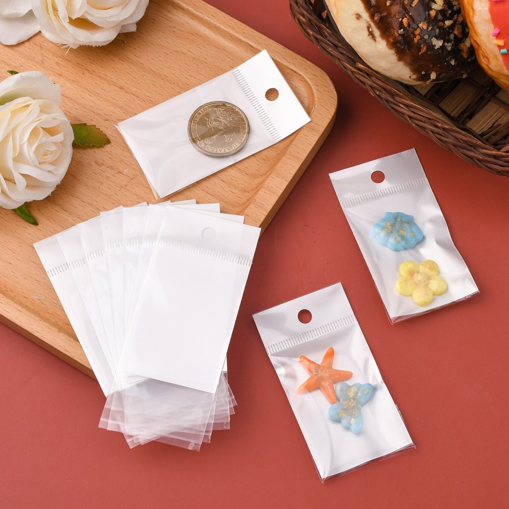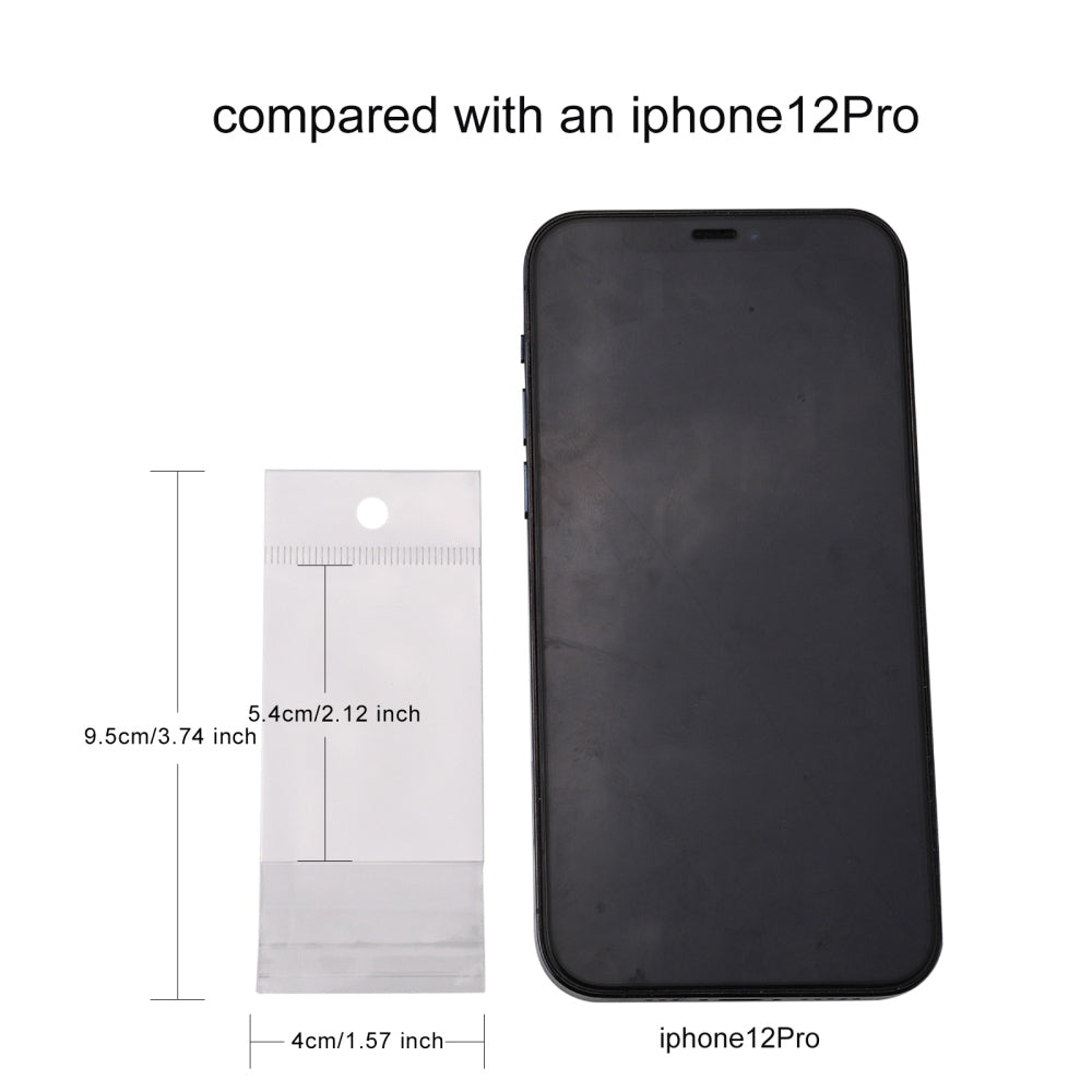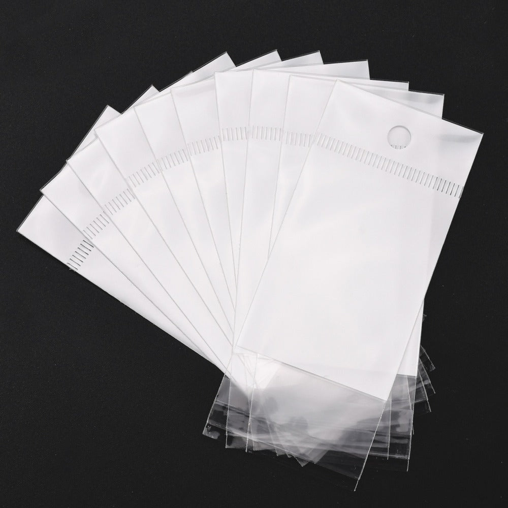1000 pc Pearl Film OPP Cellophane Bags, Self-Adhesive Sealing, with Hang Hole, Rectangle, Clear, 9.5x4cm, Unilateral Thickness: 0.035mm, Inner Measure: 5.4x4cm, Hole: 6mm