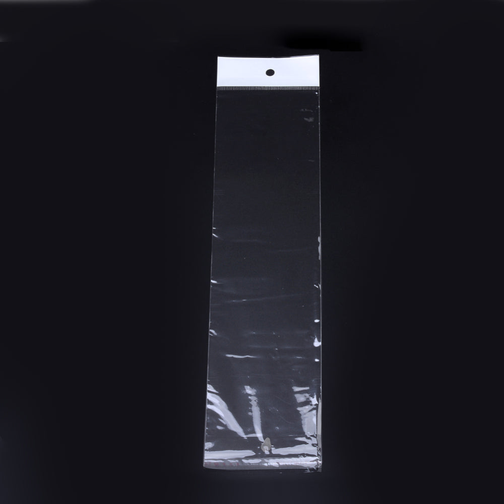 1000 pc Pearl Film Cellophane Bags, OPP Material, Self-Adhesive Sealing, with Hang Hole, Rectangle, Clear, 22x4cm, Unilateral Thickness: 0.023mm, Inner Measure: 16~17x4cm, dop: 4x2cm