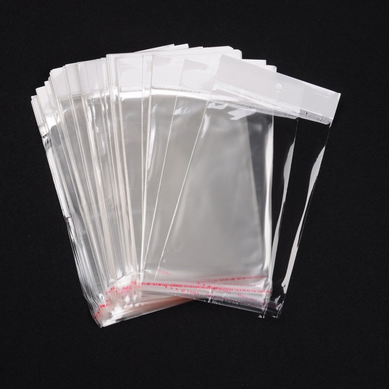 Pearl Film Cellophane Bags, Self-Adhesive Sealing, with Hang Hole, used for packing jewelleries and other items.