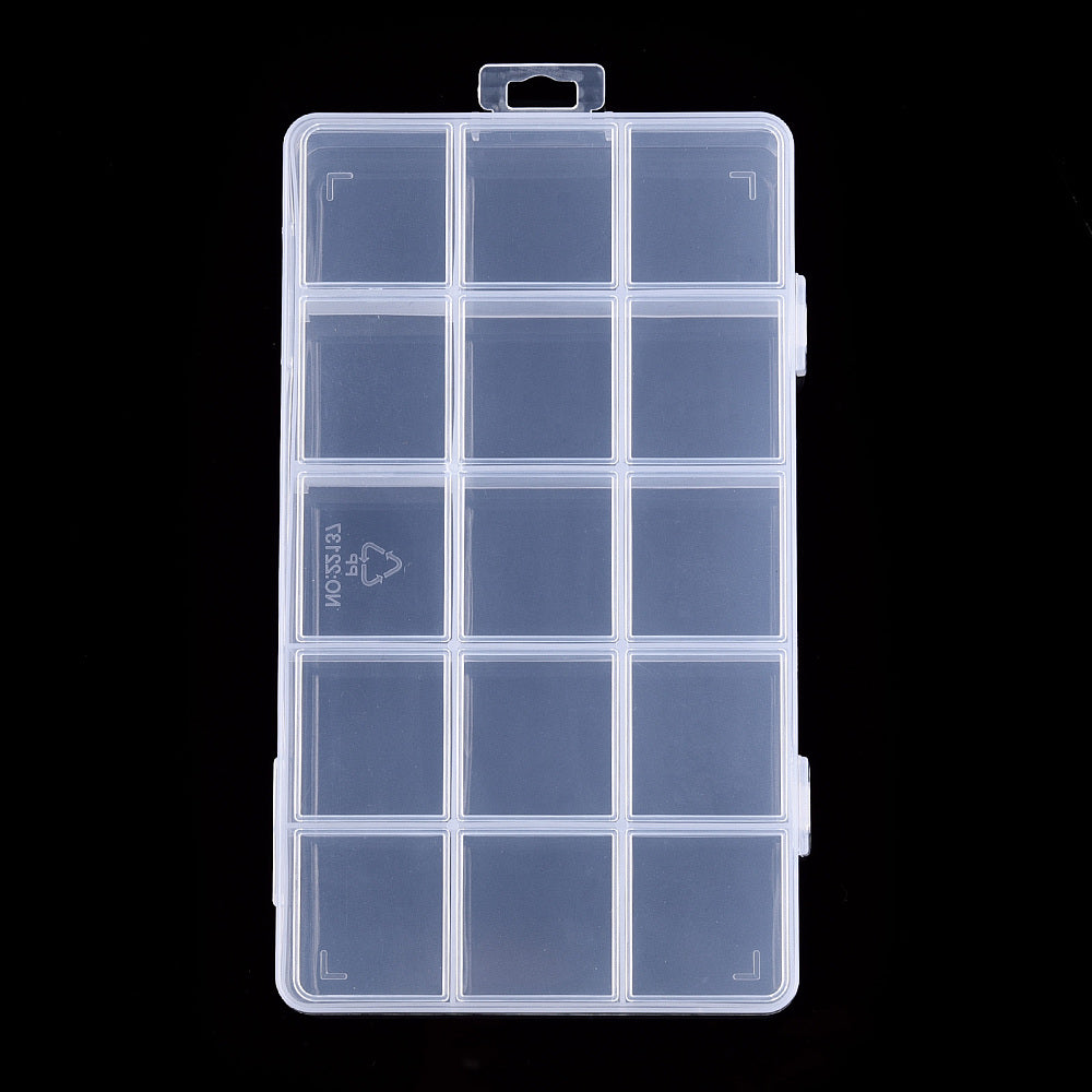 Rectangle Polypropylene(PP) Bead Storage Container, Adjustable Deviders Box, with Hinged Lid and 15 Compartments, for Jewelry Small Accessories, Clear