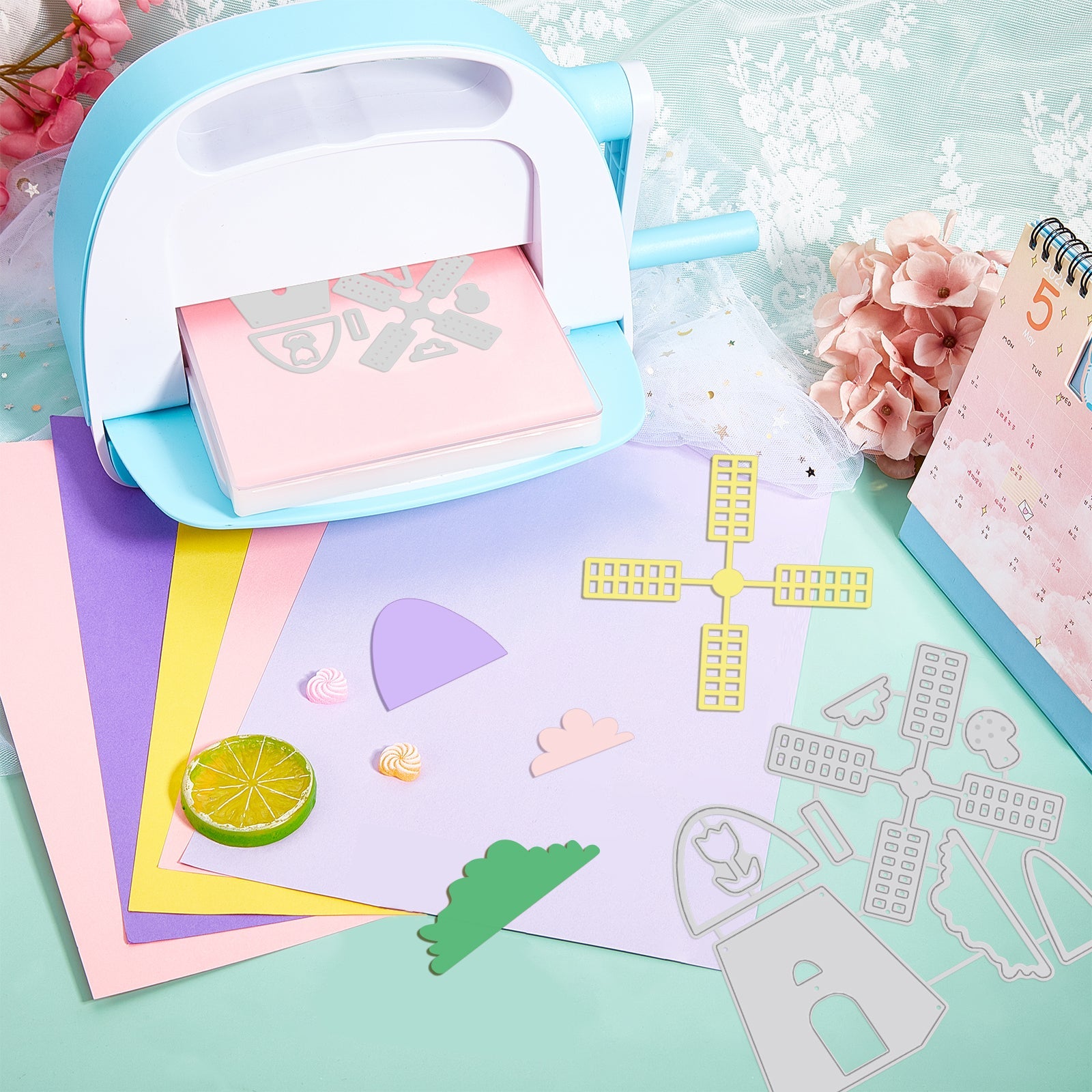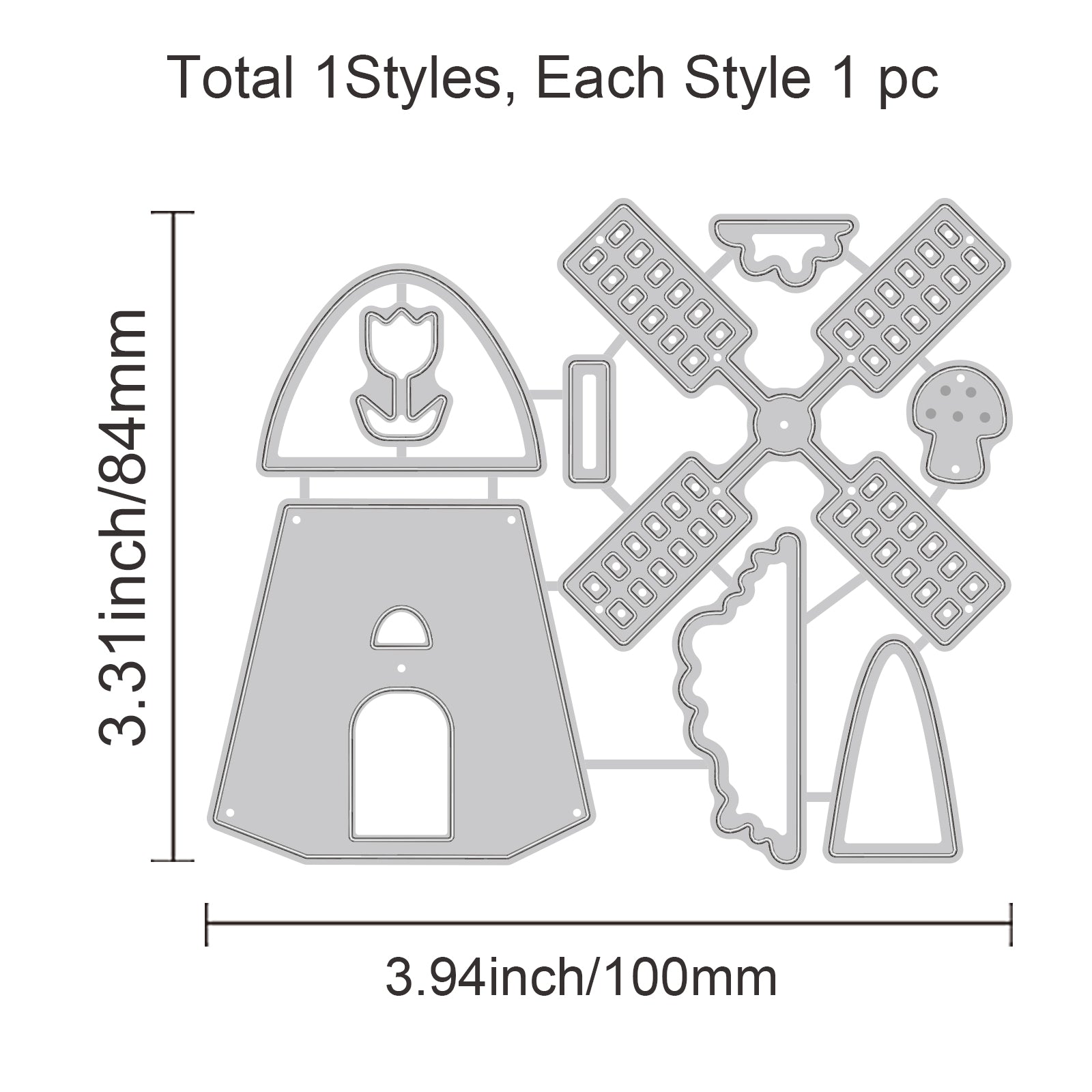 CRASPIRE Windmill, House, Trees, Flowers, Tulips, Grass, Mushrooms Carbon Steel Cutting Dies Stencils, for DIY Scrapbooking/Photo Album, Decorative Embossing DIY Paper Card