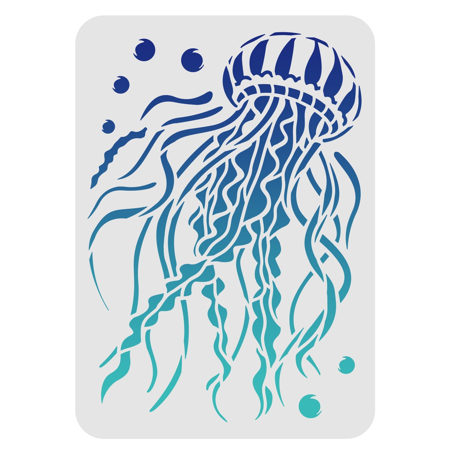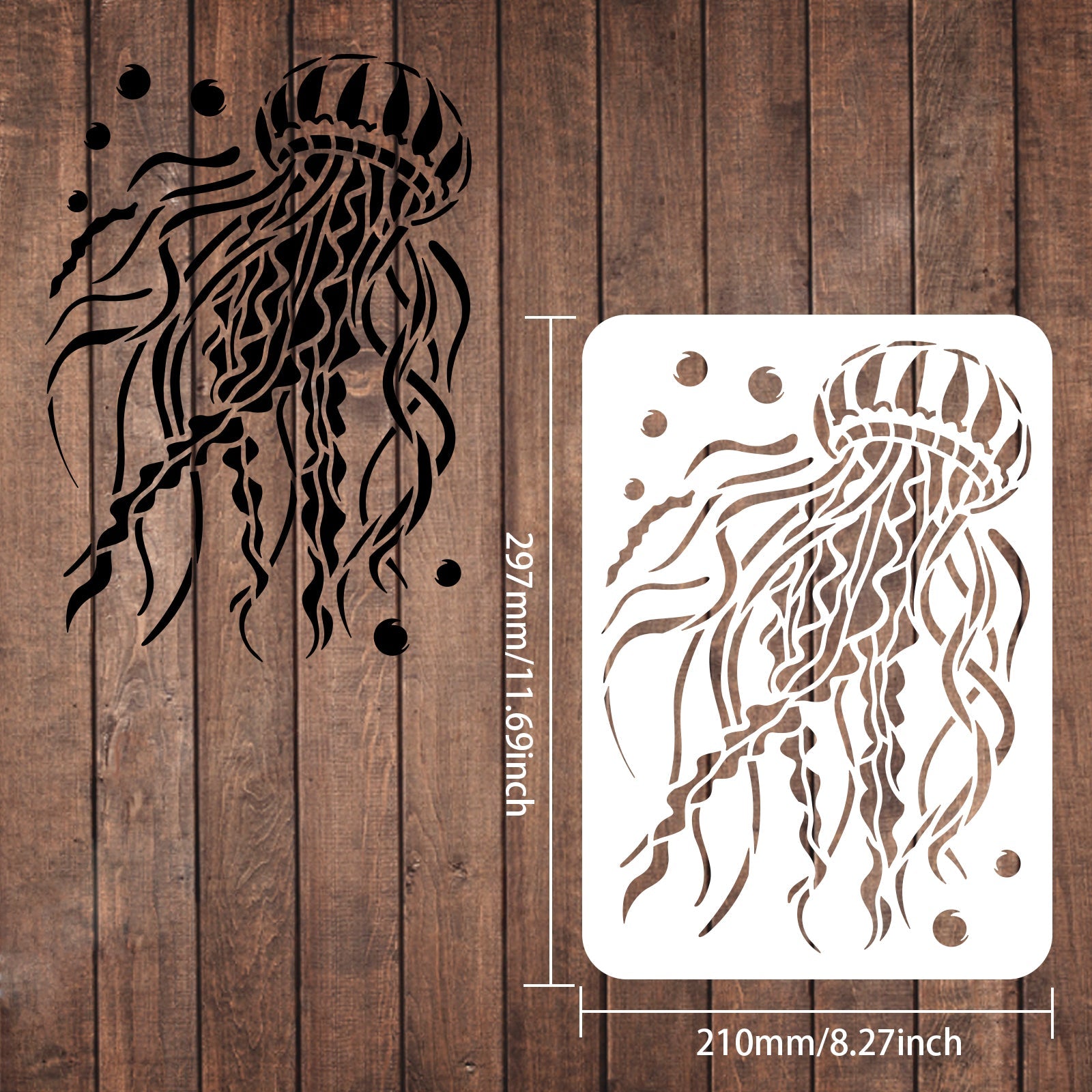 CRASPIRE Plastic Drawing Painting Stencils Templates, Rectangle, Jellyfish Pattern, 297x210mm